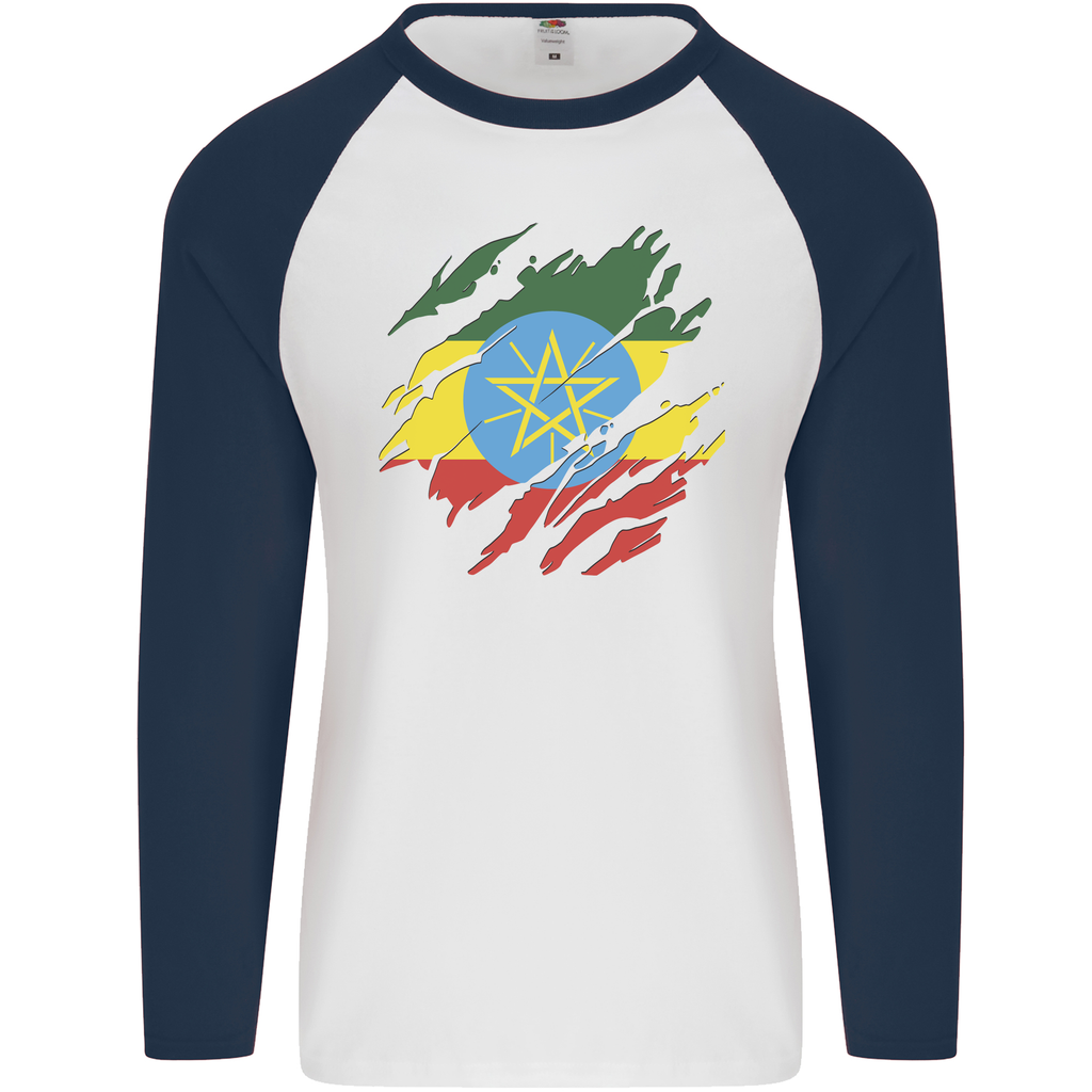 Celebrate your love for Ethiopia with the Torn Ethiopia Flag Ethiopian Day Football Men's Long Sleeve Baseball T-Shirt. This stylish tee is more than just a piece of clothing; it’s a statement of pride and passion for the vibrant culture of Ethiopia. Whether it’s Ethiopian Day or just a casual day out, this t-shirt is designed to make you stand out.