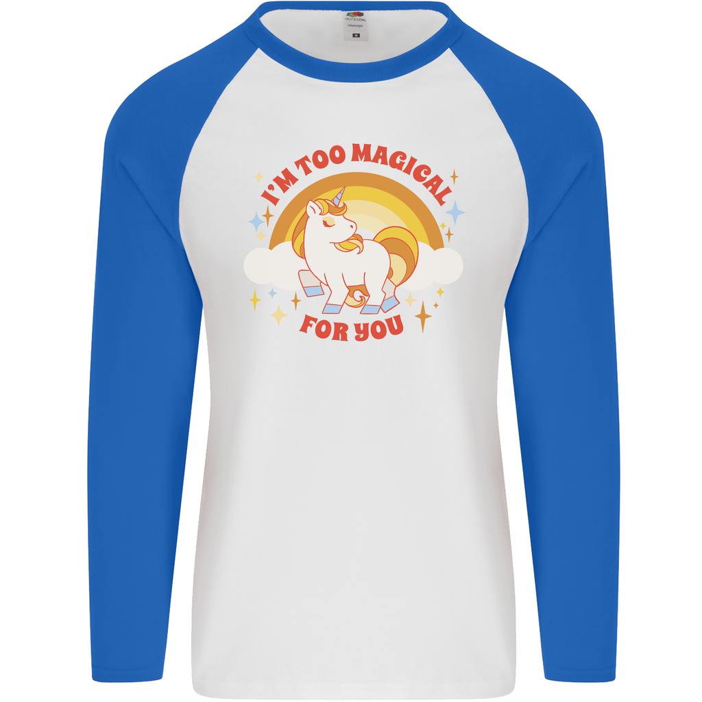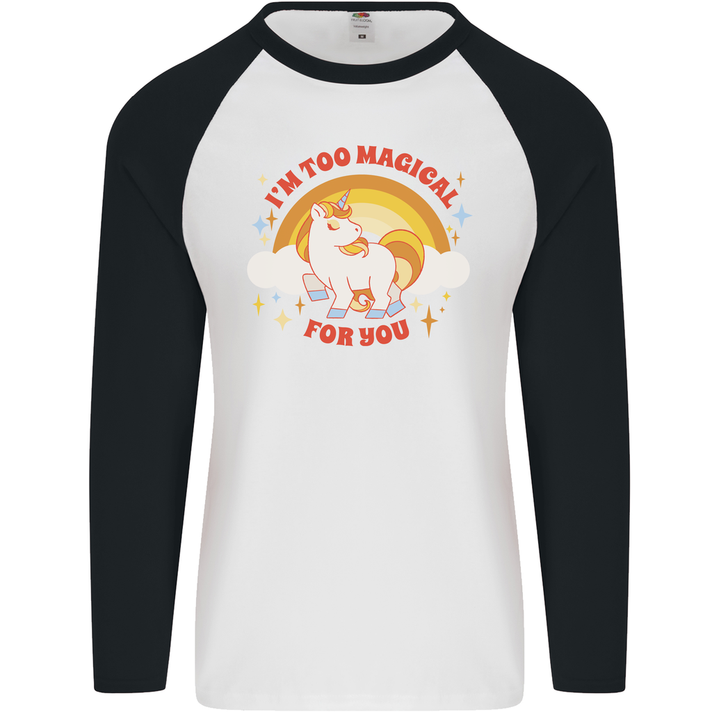 Don't miss the chance to add this enchanting Unicorn I'm Too Magical For You Men's Long Sleeve Baseball T-Shirt to your collection. Embrace your inner magic and showcase your unique style today!