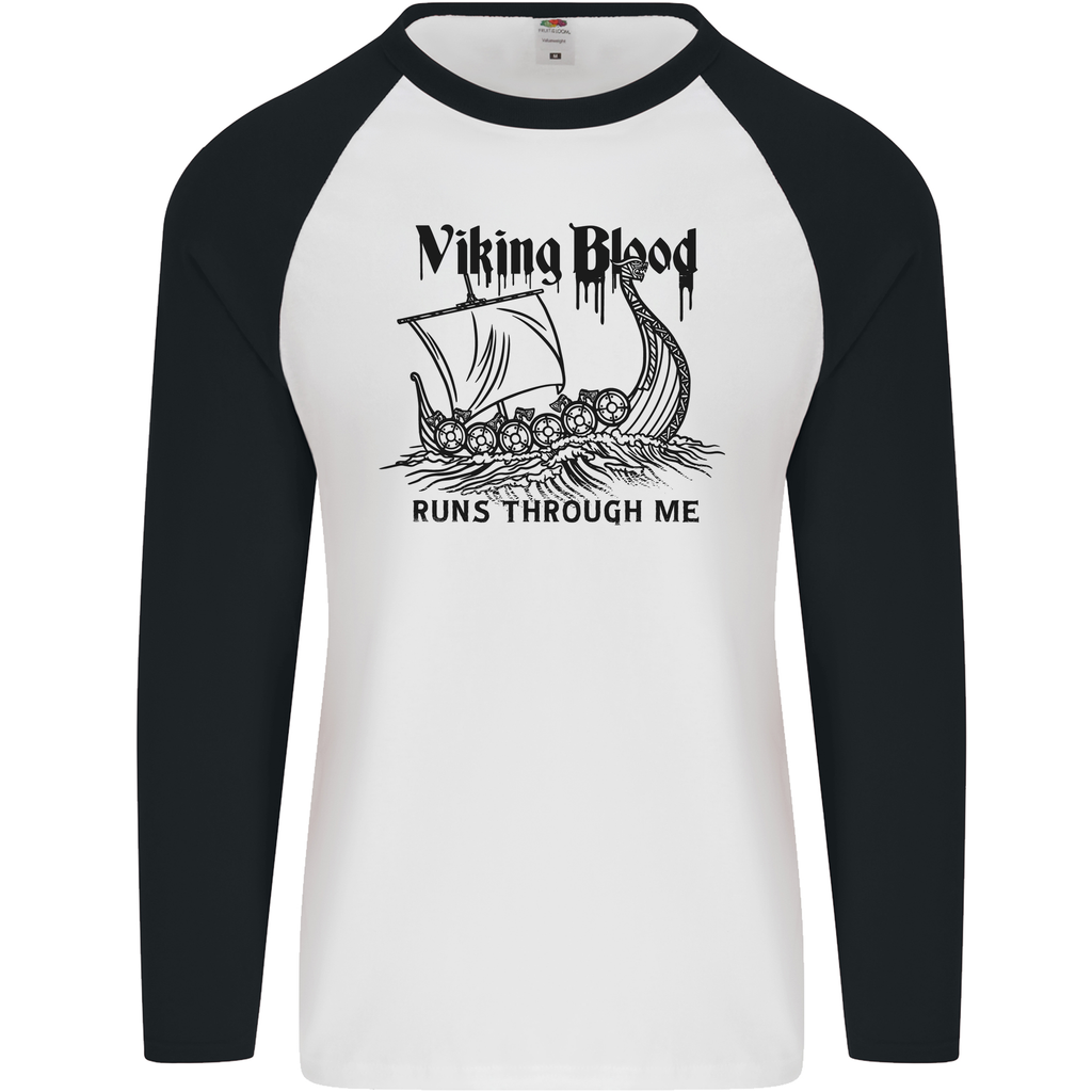 Key features of the Viking Blood Runs Through Me Ship Sailing Men's L/S Baseball T-Shirt include: