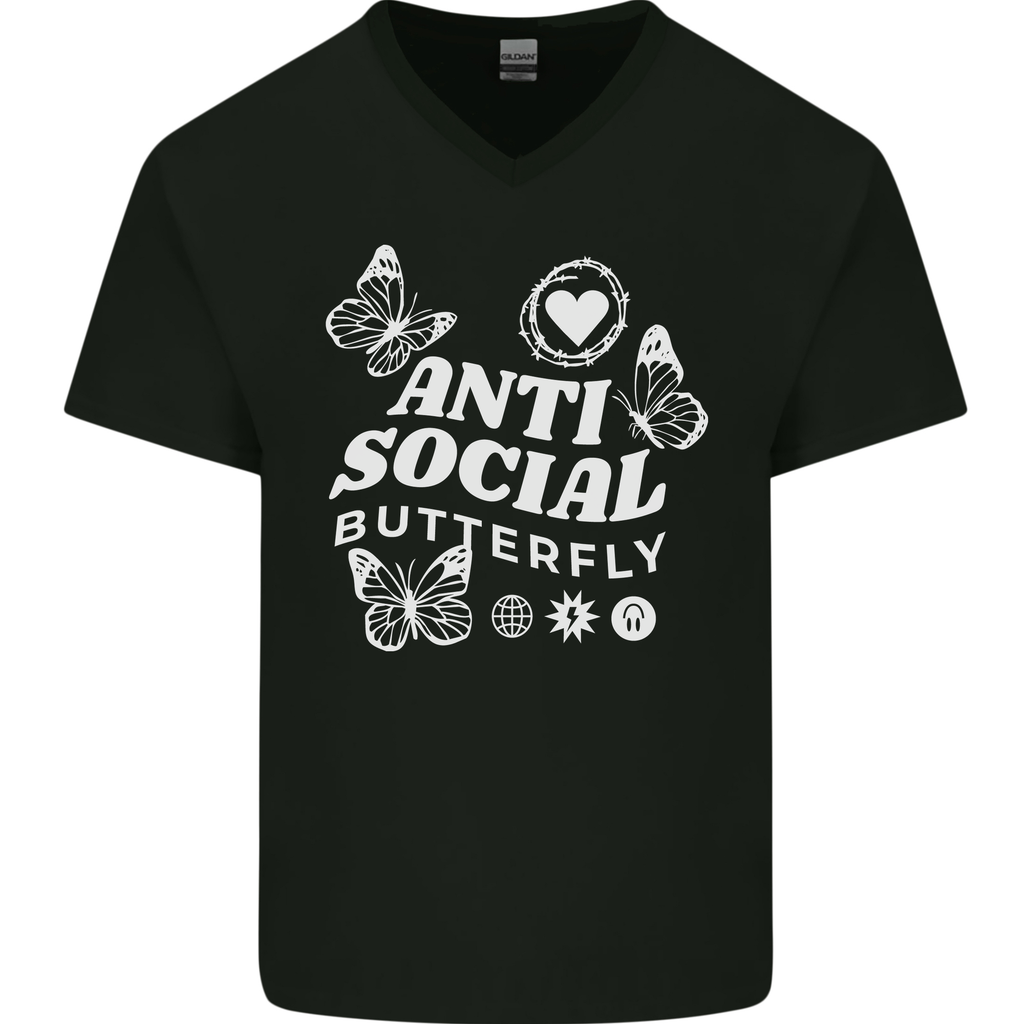 Antisocial Butterfly Funny Mens V-Neck Cotton T-Shirt