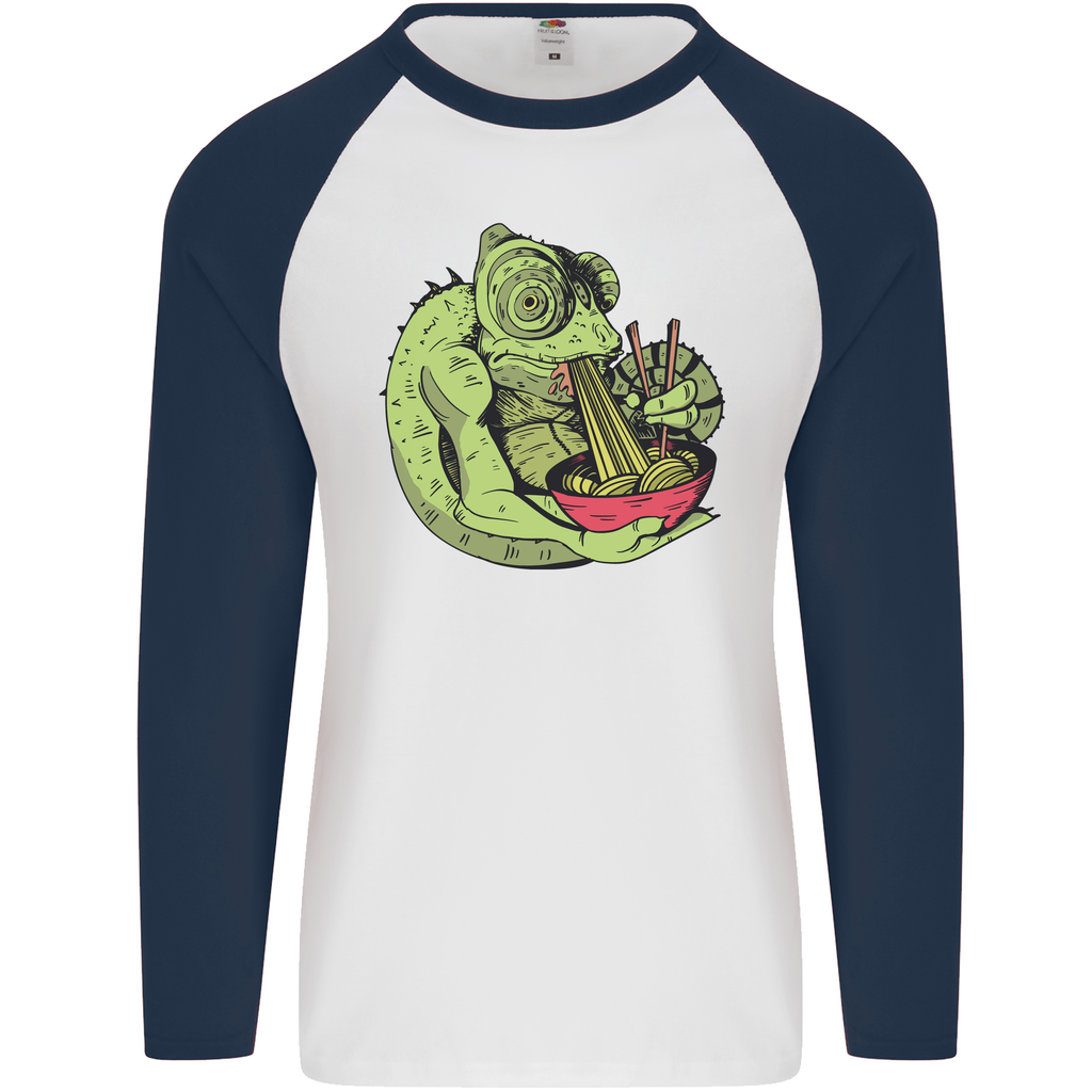 A Chameleon Eating Ramen Mens L/S Baseball T-Shirt