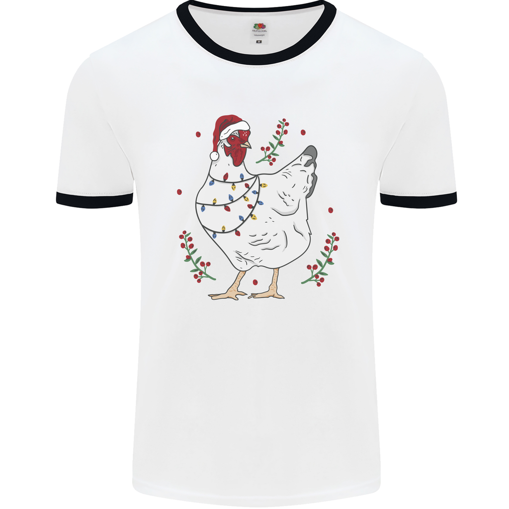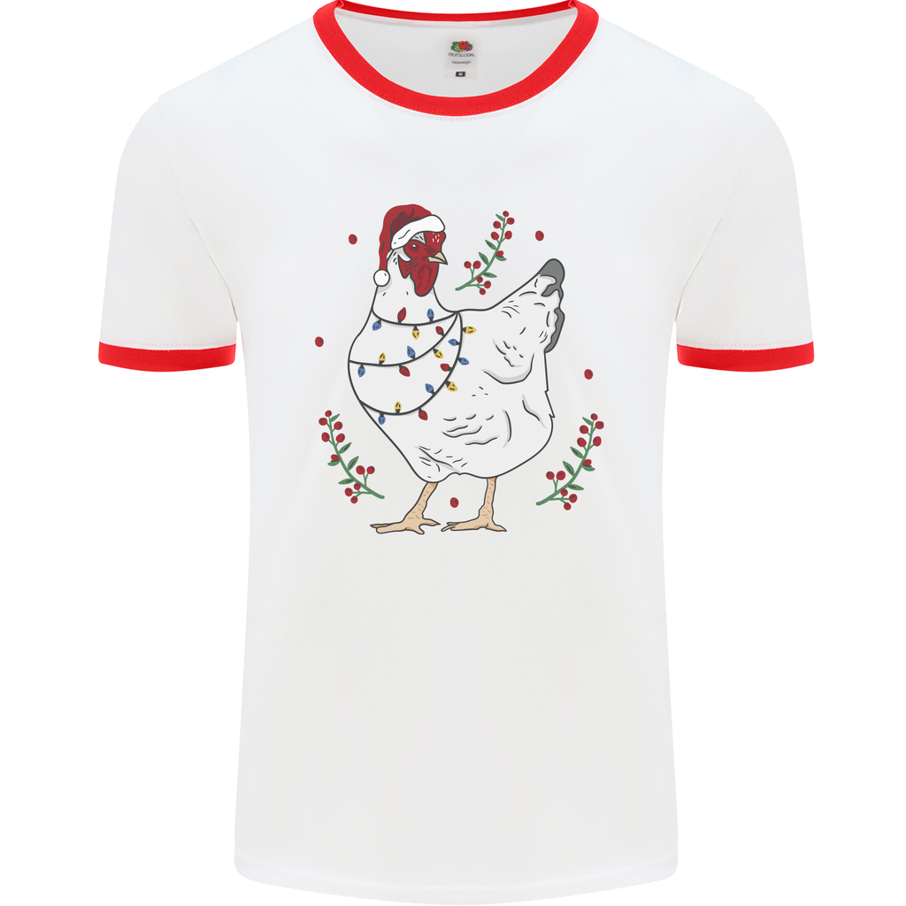 Crafted from high-quality, breathable cotton, this ringer t-shirt ensures a soft and comfortable fit throughout the day. The vibrant graphic features a cheerful Christmas chicken decked out in a classic Xmas hat, adding a humorous touch to your festive attire. Stand out at any party and spread the joy of the season with this unique design!