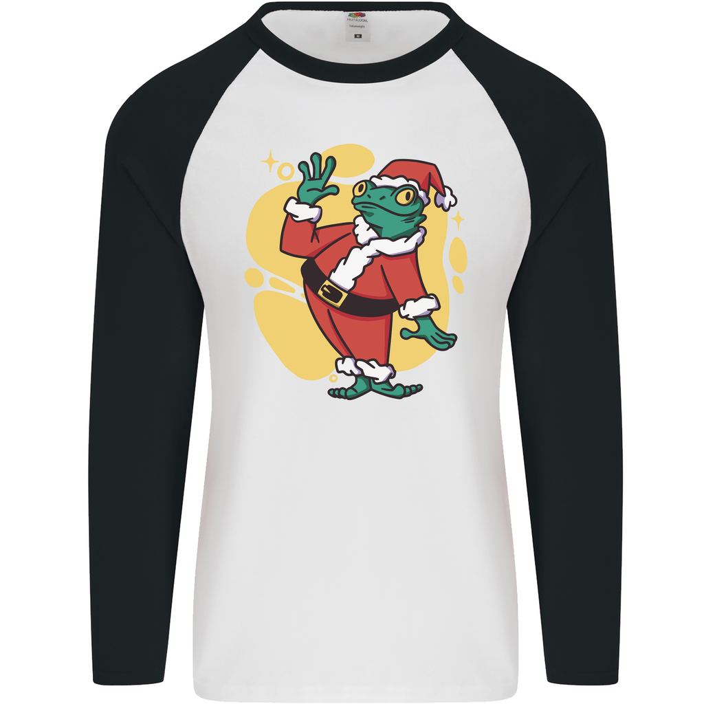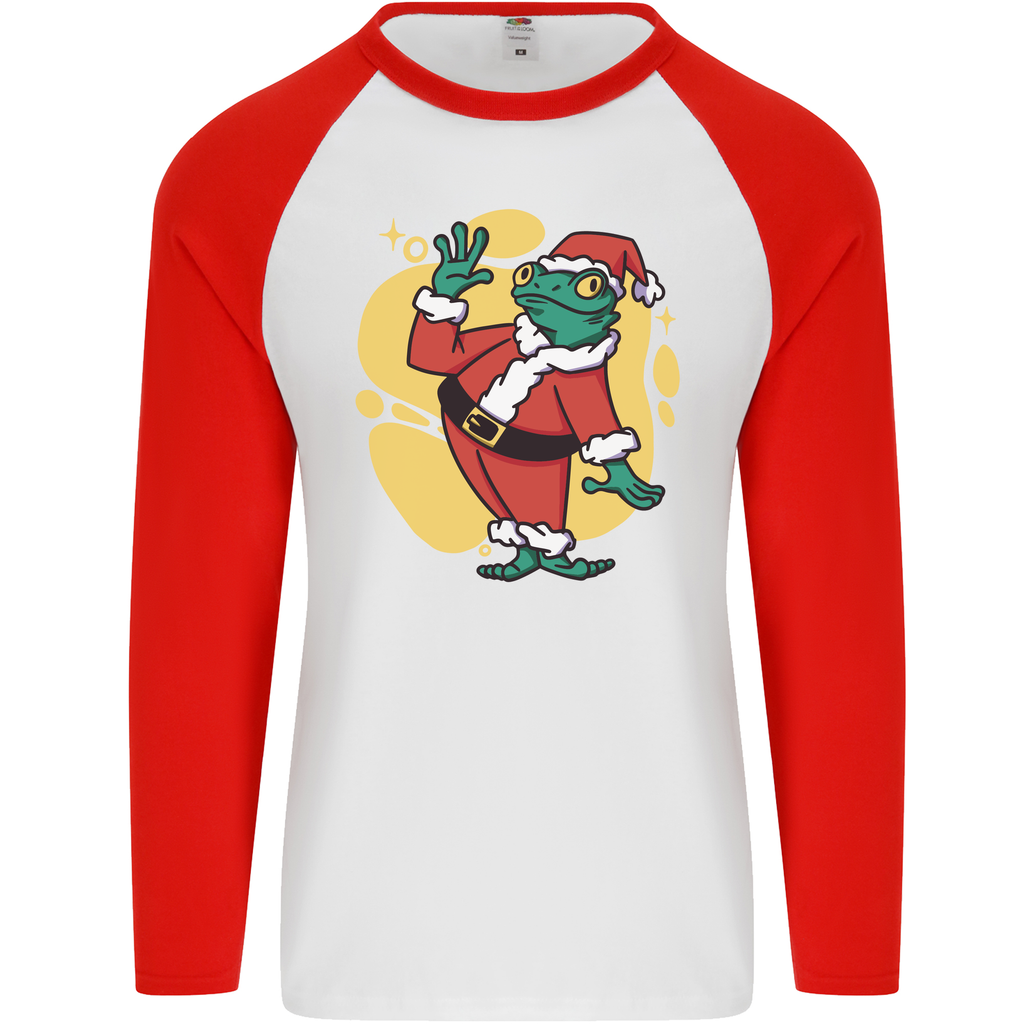 A Christmas Frog Dressed as Santa Claus Mens L/S Baseball T-Shirt