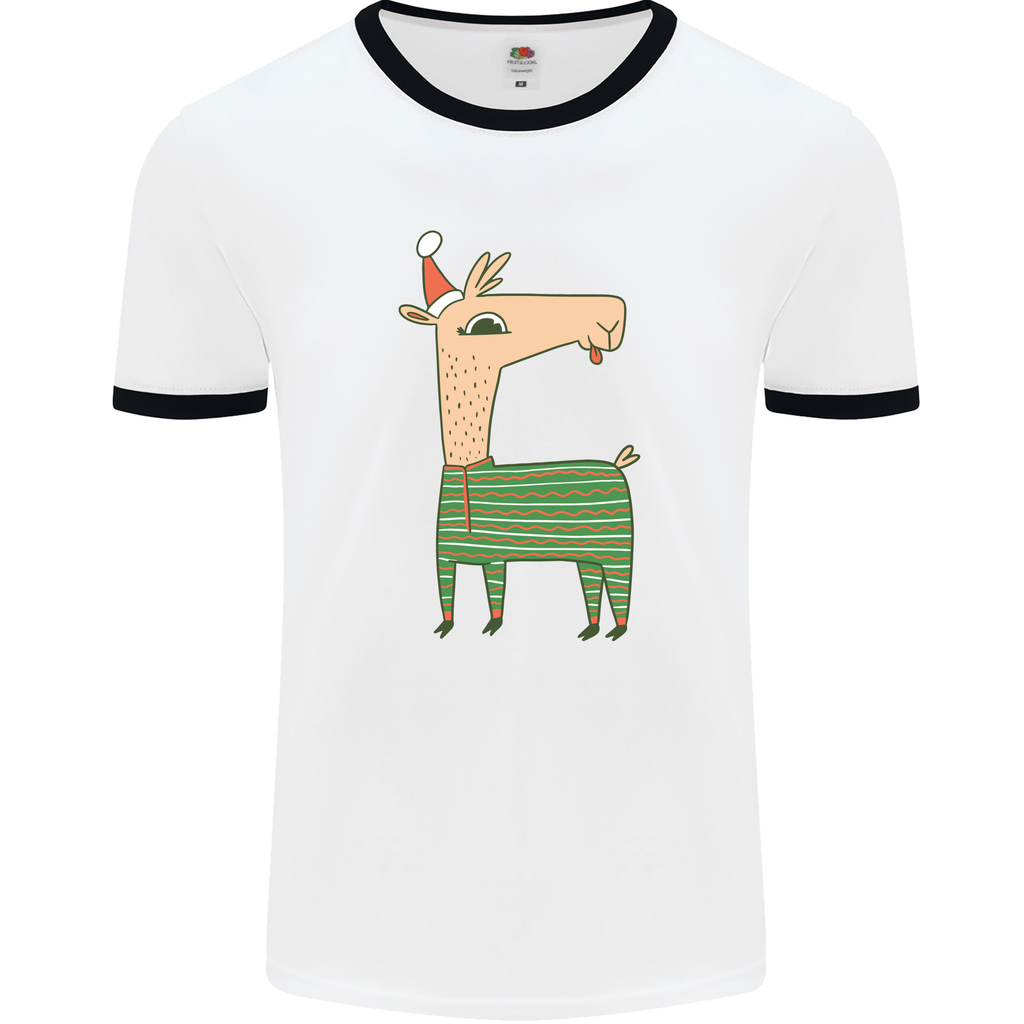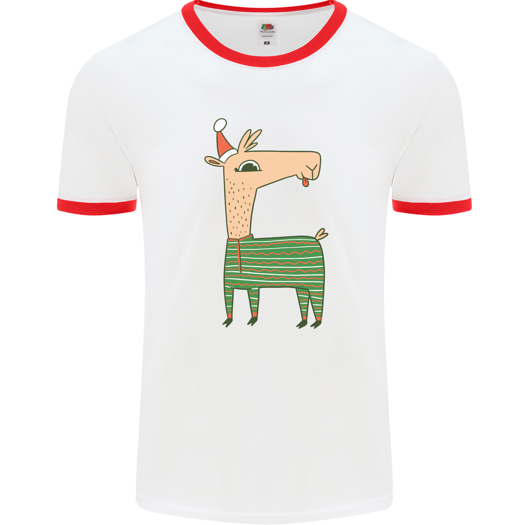 The Christmas Llama Wearing an Xmas Hat Men's Ringer T-Shirt is available in various sizes, ensuring a perfect fit for everyone. It makes an excellent gift for friends and family who appreciate a good laugh and enjoy celebrating the holiday season with flair. Pair it with your favourite jeans or festive accessories for the ultimate holiday look!