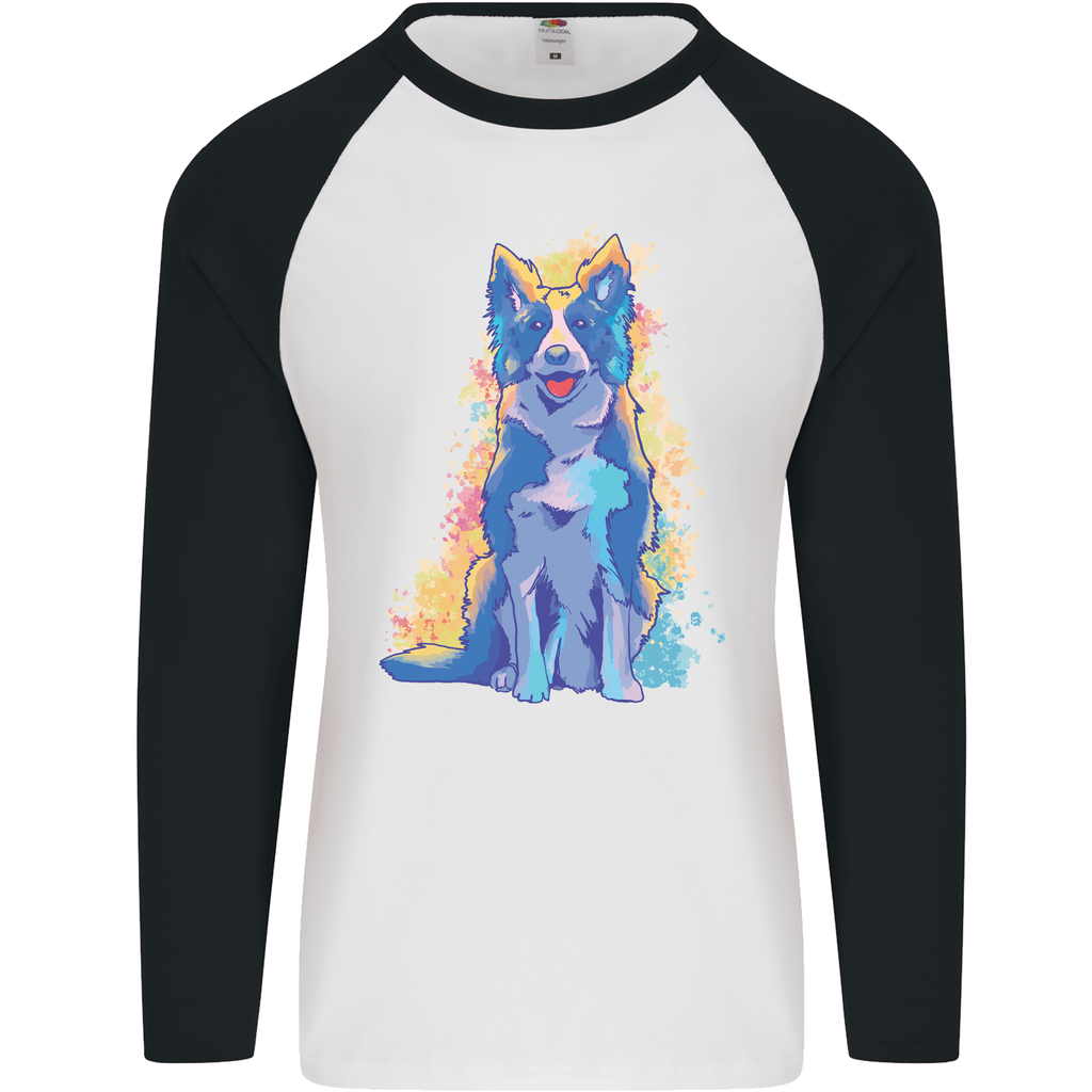 Introducing the vibrant and stylish Colourful Border Collie Dog Design Men's Long Sleeved Baseball T-Shirt, perfect for dog lovers who wish to showcase their passion in a fun and fashionable way. This unique garment blends comfort with eye-catching design, making it an ideal choice for casual outings, sporting events, or simply lounging at home.