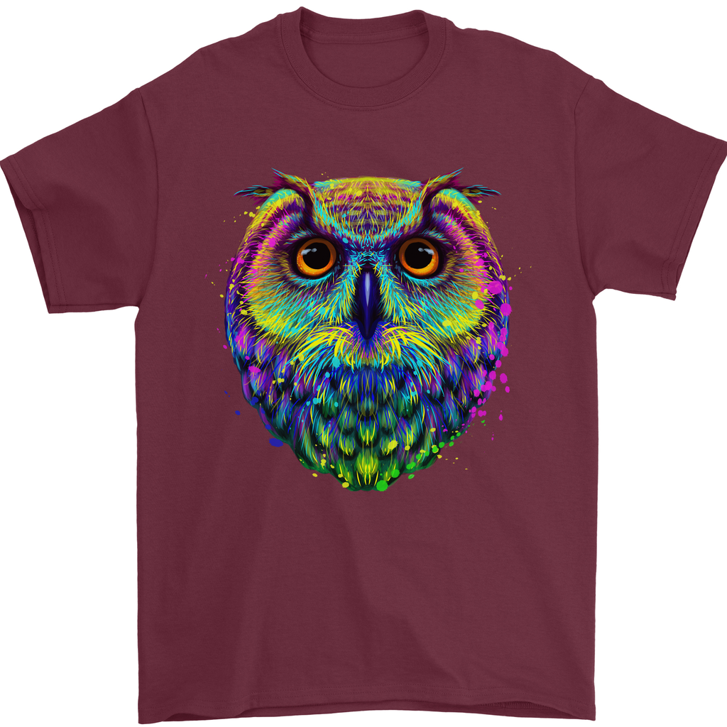 A Colourful Owl Mens T-Shirt 100% Cotton