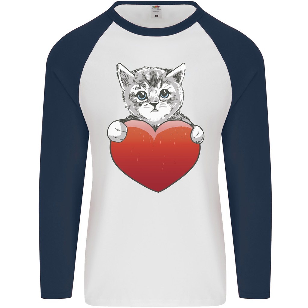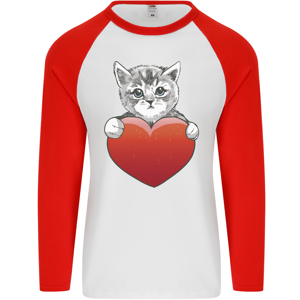 A Cute Cat With a Heart Love Valentines Day Mens L/S Baseball T-Shirt
