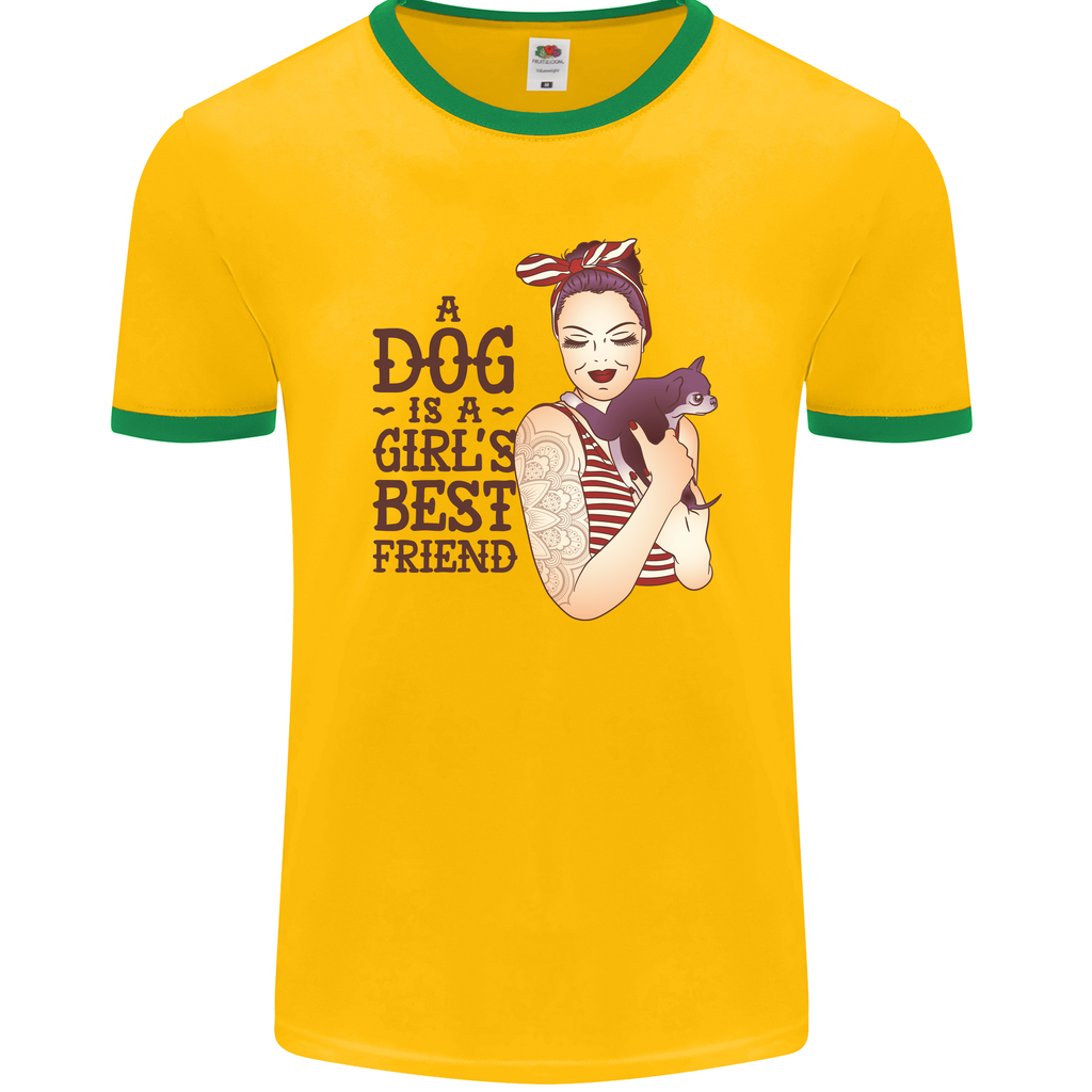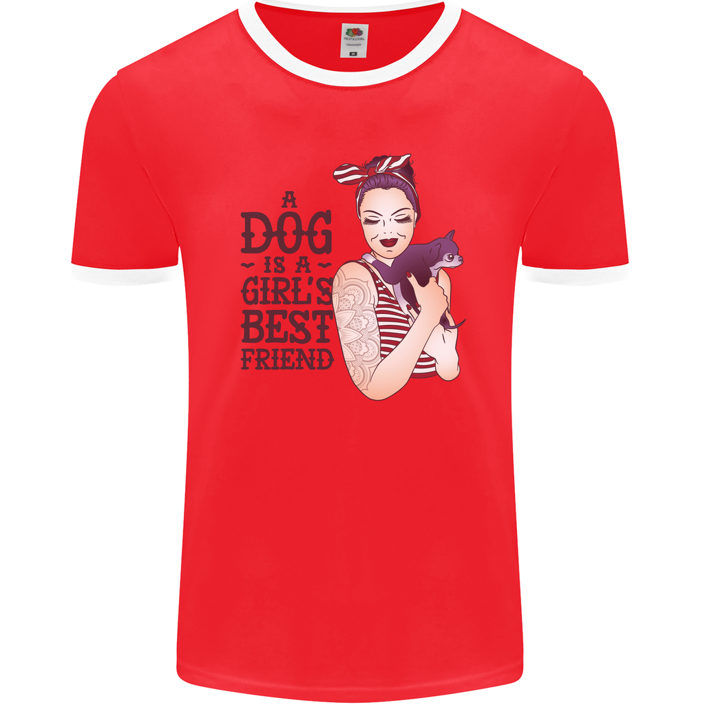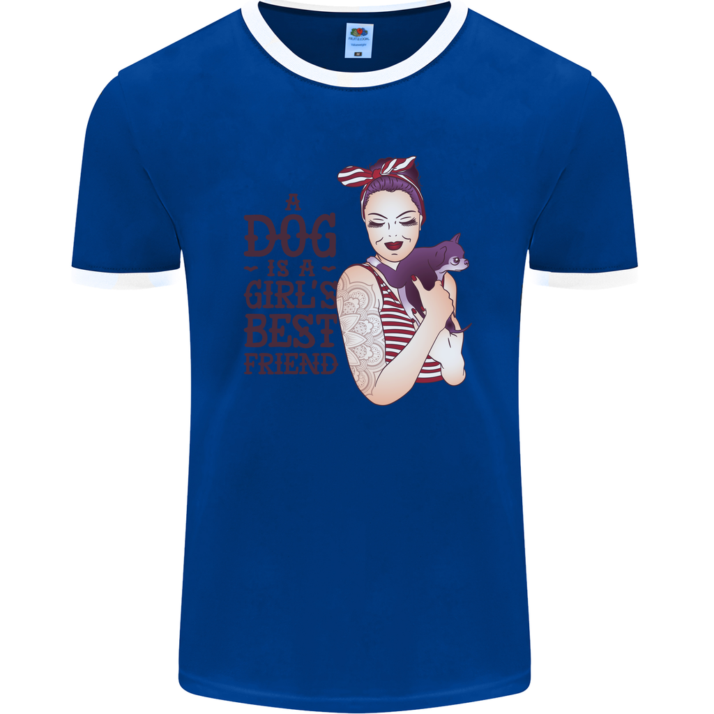 Express your love for Chihuahuas with this charming "A Dog Is a Girl's Best Friend" Men's Ringer T-Shirt by Fruit of the Loom. If you are a dog lover or know someone who is, this tee is a must-have addition to your wardrobe.