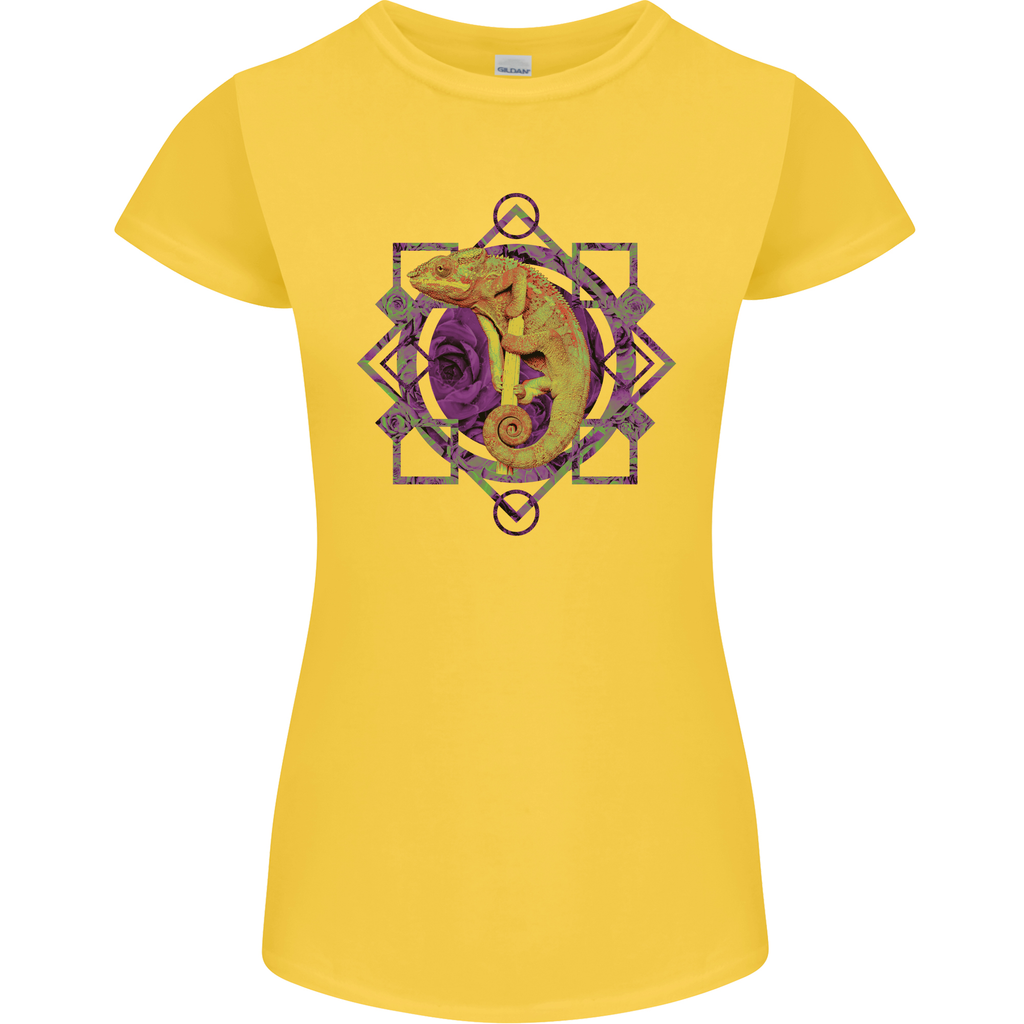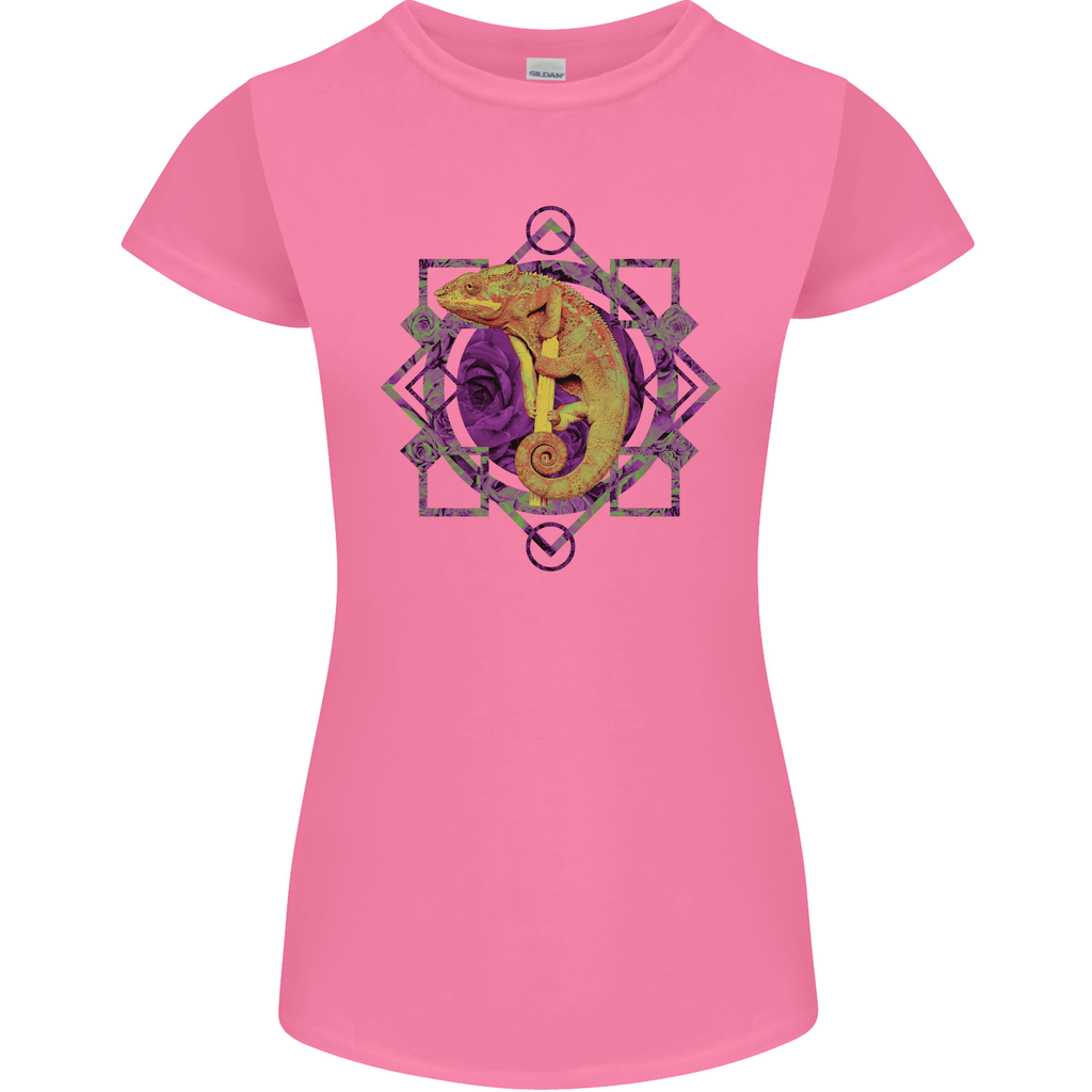 Make a statement without saying a word – get your hands on our Geometric Chameleon Women's Petite Cut T-Shirt today and elevate your wardrobe with a pop of creativity and style!