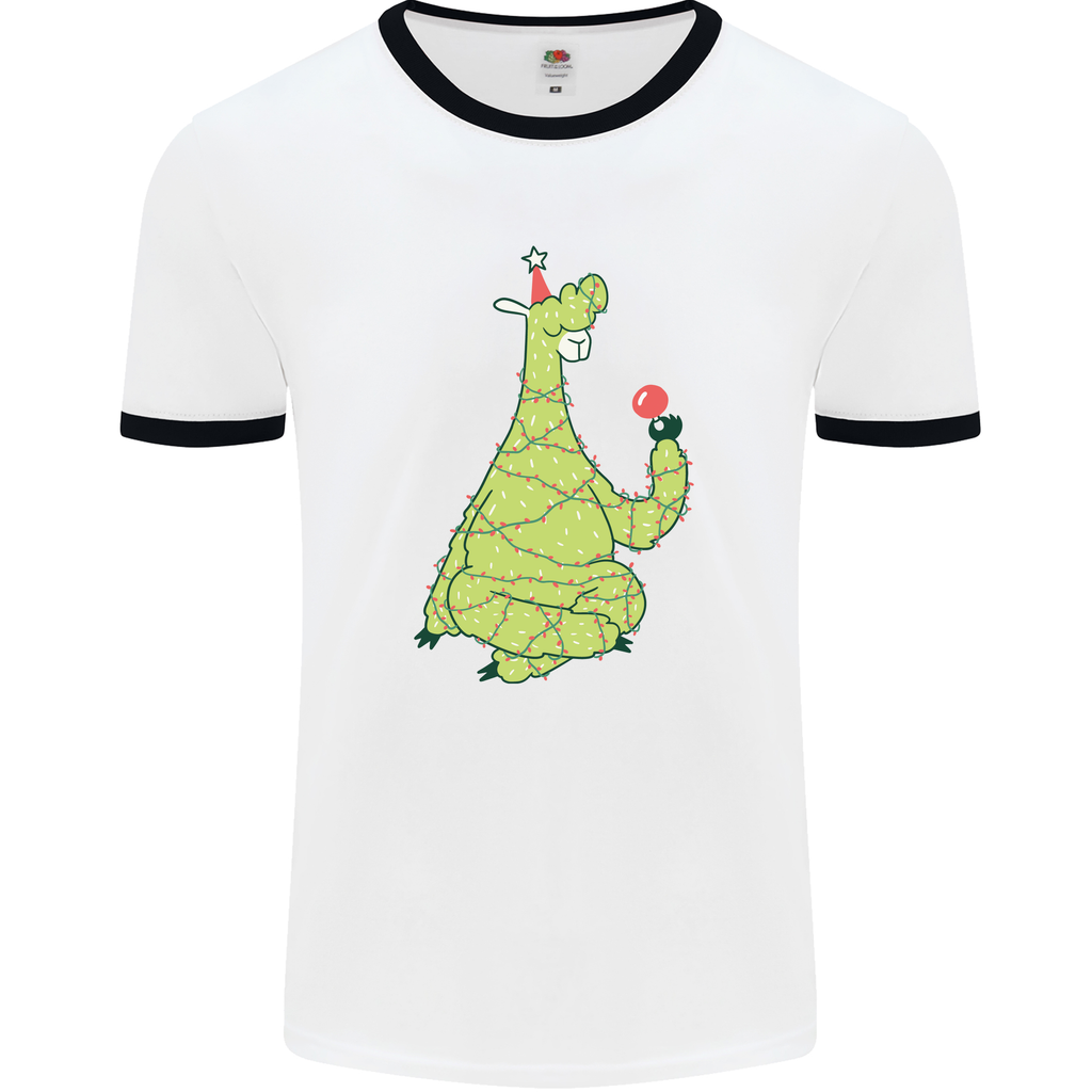 A Llama Wearing a Christmas Hat Xmas Mens Ringer T-Shirt