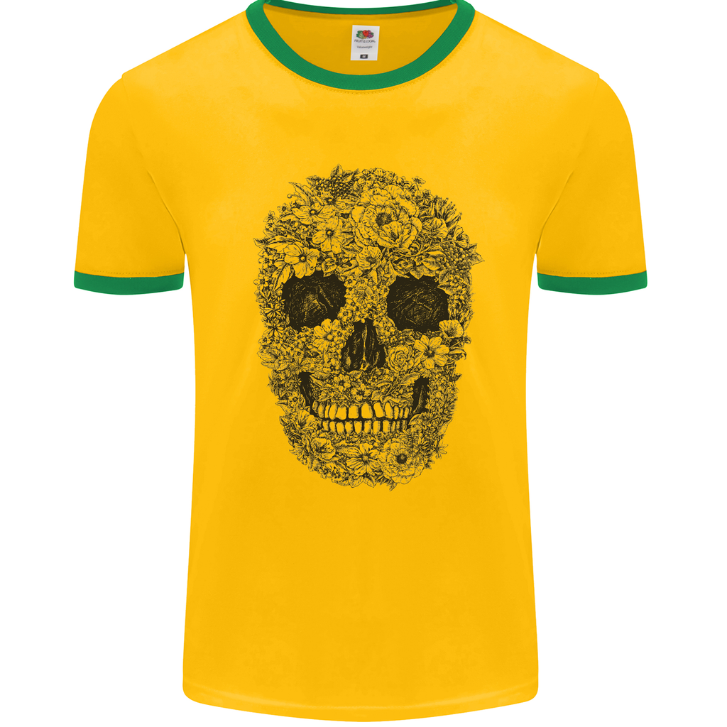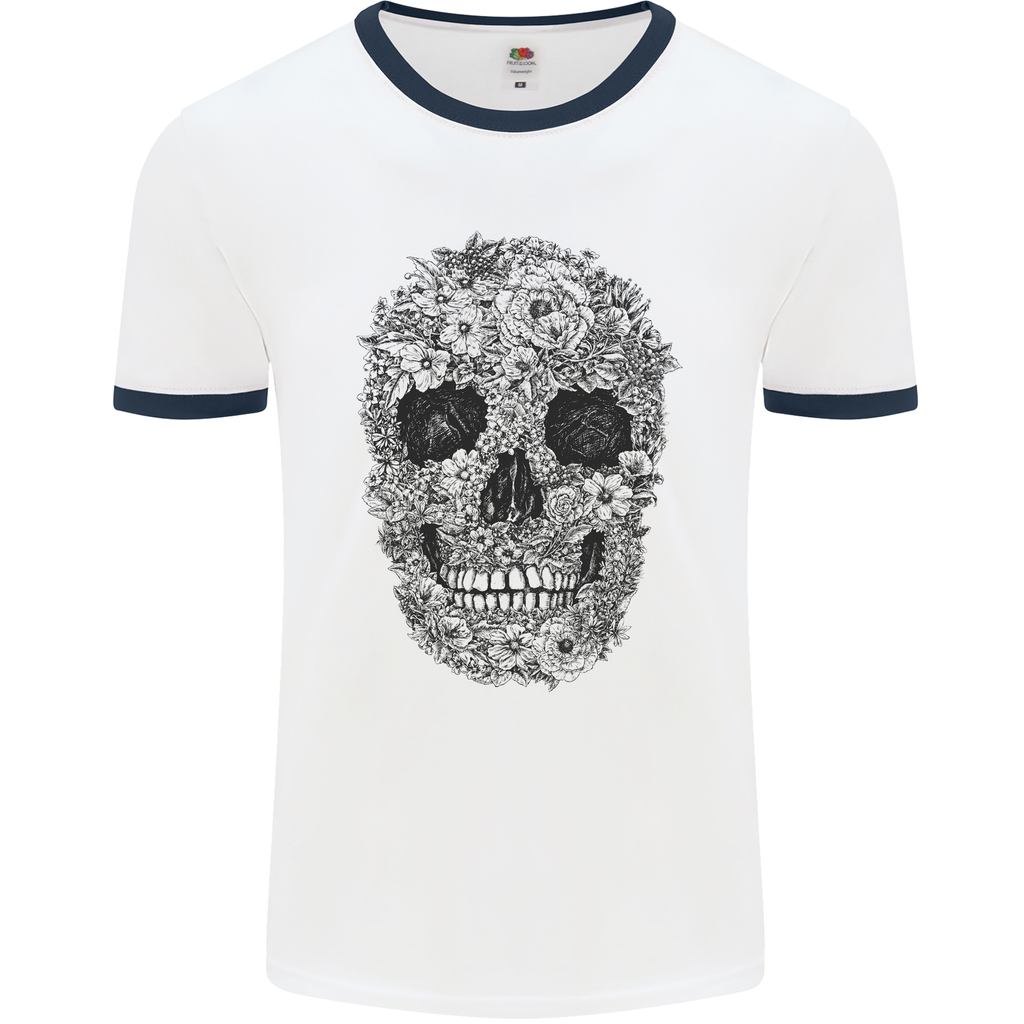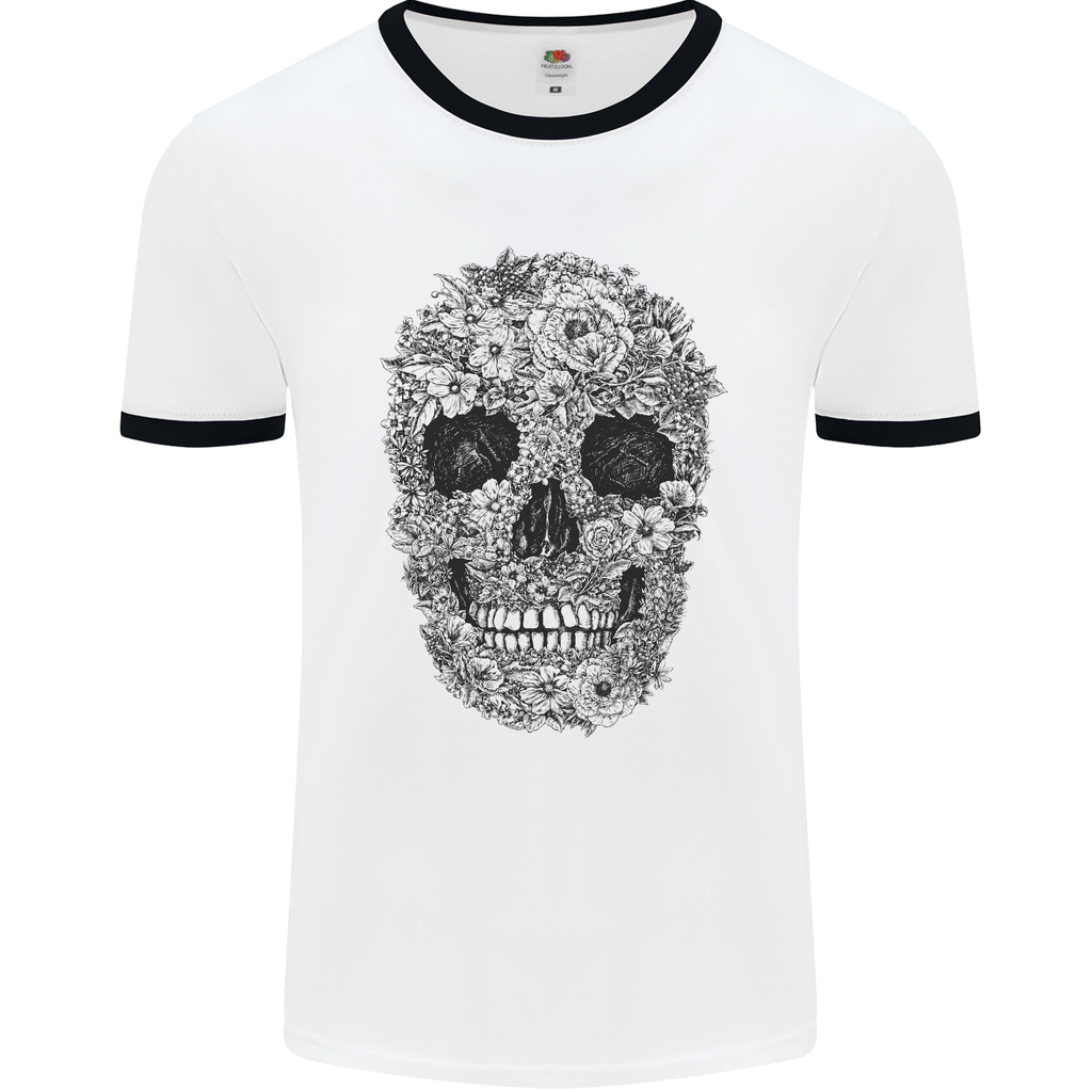 A Skull Made of Flowers Gothic Rock Biker Mens Ringer T-Shirt