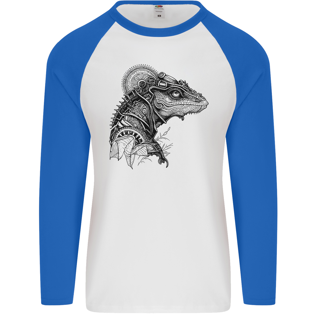 Embrace your inner rebel with our striking Steampunk Iguana Lizard Reptiles Men's Long Sleeve Baseball T-Shirt. This unique piece combines the intricate aesthetics of steampunk design with the natural allure of reptiles, making it a must-have for any adventurous wardrobe. Crafted from high-quality cotton, this t-shirt promises both comfort and durability for everyday wear.