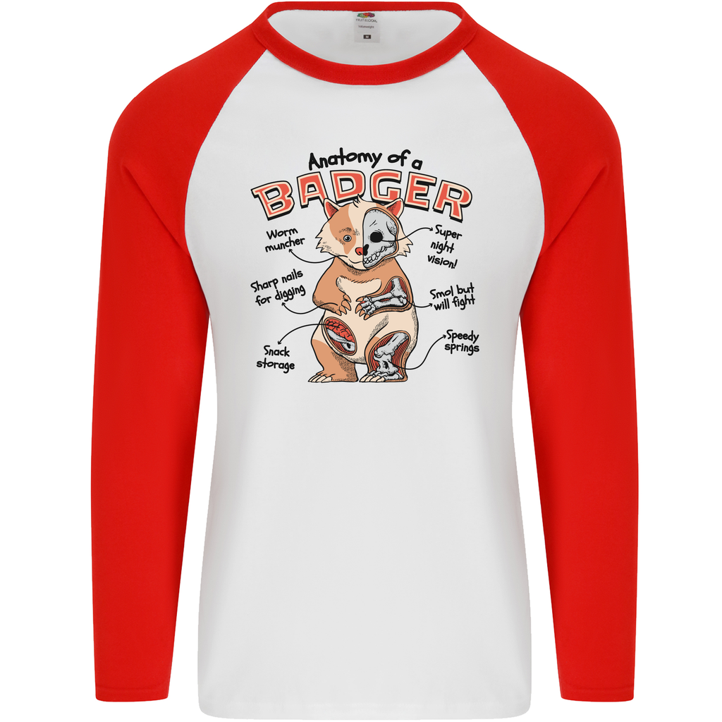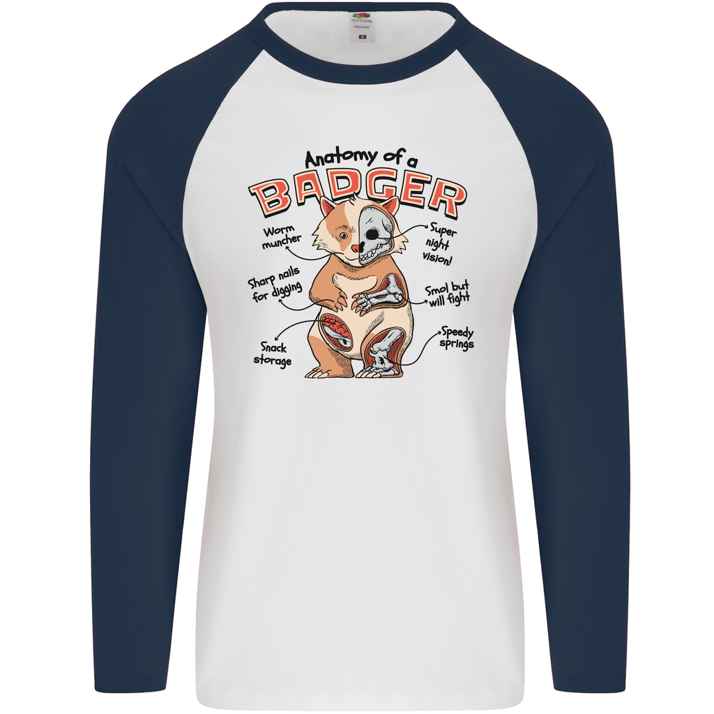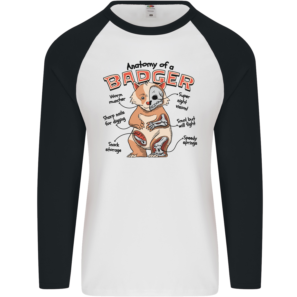 The Anatomy of a Badger Funny Men's L/S Baseball T-Shirt is perfect for wearing at home, at casual outings, or during your favourite outdoor activities. Embrace the laughter and enjoy the comfort this t-shirt provides while adding a quirky touch to your personal style.