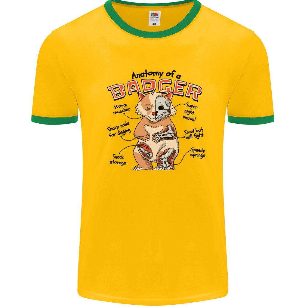 Welcome to the world of quirky and playful fashion with our Anatomy of a Badger Funny Men's Ringer T-Shirt! This bold and eye-catching tee is perfect for those who love to stand out with a touch of humour in their wardrobe.
