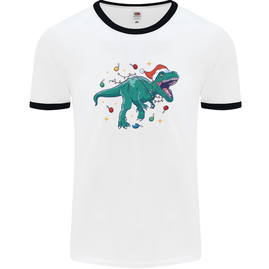 Angry Christmas T-Rex Xmas Dinosaur Mens Ringer T-Shirt