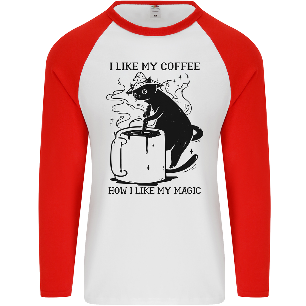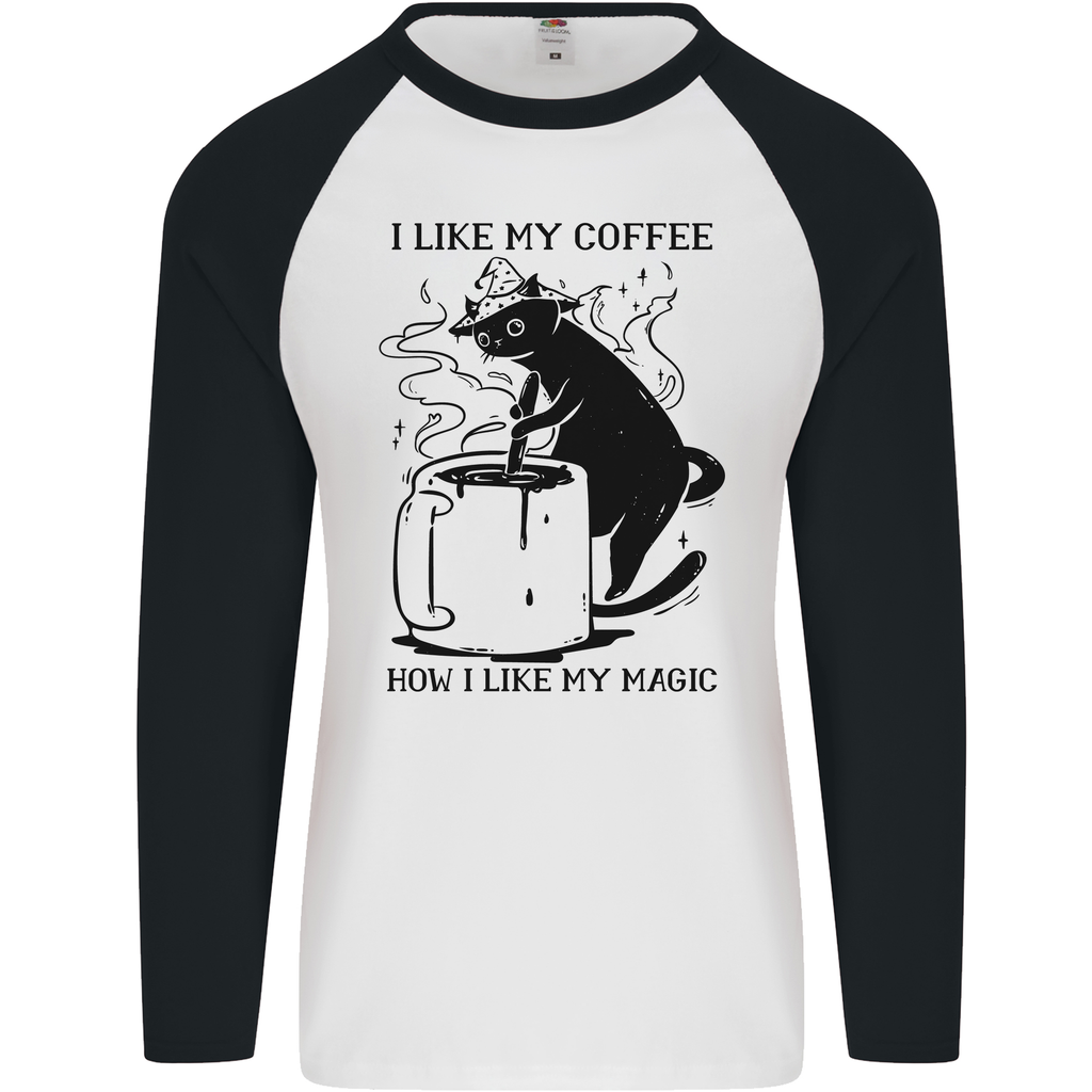 Our Black Cat Halloween Funny Coffee Men's Long Sleeve Baseball T-Shirt is more than just apparel; it's a way to express your love for all things feline and caffeinated. Join the fun and show off your personality with this quirky t-shirt that pairs well with your playful spirit.