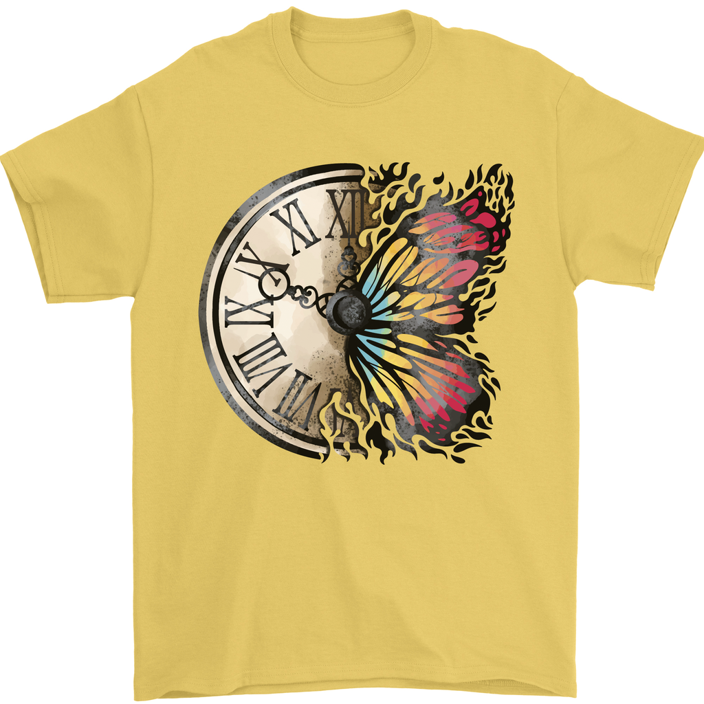 Introducing the Butterfly Clock Mens T-Shirt constructed from 100% premium cotton - a must-have for any fashionable man's wardrobe! Elevate your style with this trendy and comfortable tee that combines unique artistic expression with high-quality materials.