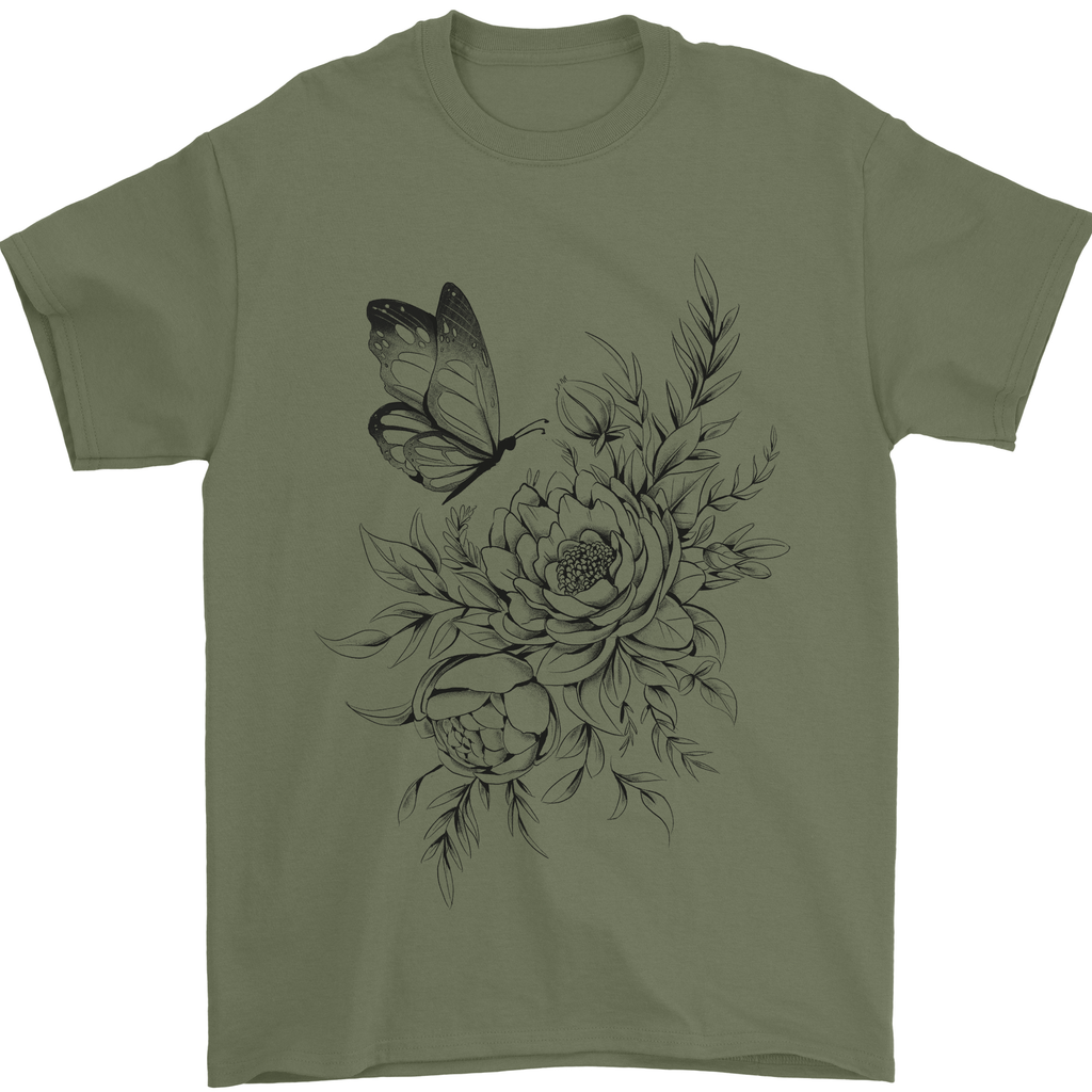 Welcome to a world of style and comfort with our Butterfly & Flowers Men's T-Shirt crafted from 100% top-quality cotton. Let your wardrobe blossom with this vibrant and unique tee that effortlessly blends nature's beauty with everyday fashion.