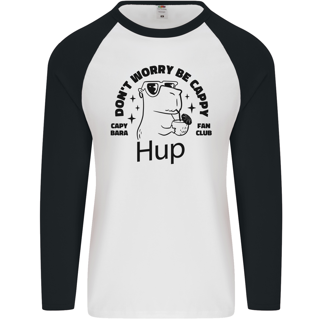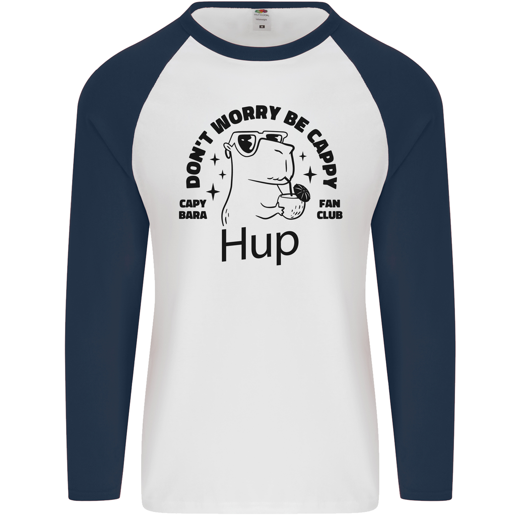 Introducing the Capybara Be Cappy Funny Men's Long Sleeve Baseball T-Shirt – a perfect blend of comfort, style, and a dash of humour! Whether you're at the park, hanging out with friends, or simply lounging at home, this t-shirt becomes an instant conversation starter. Show off your love for the cute and laid-back capybara while sporting an eye-catching design that stands out in any crowd.