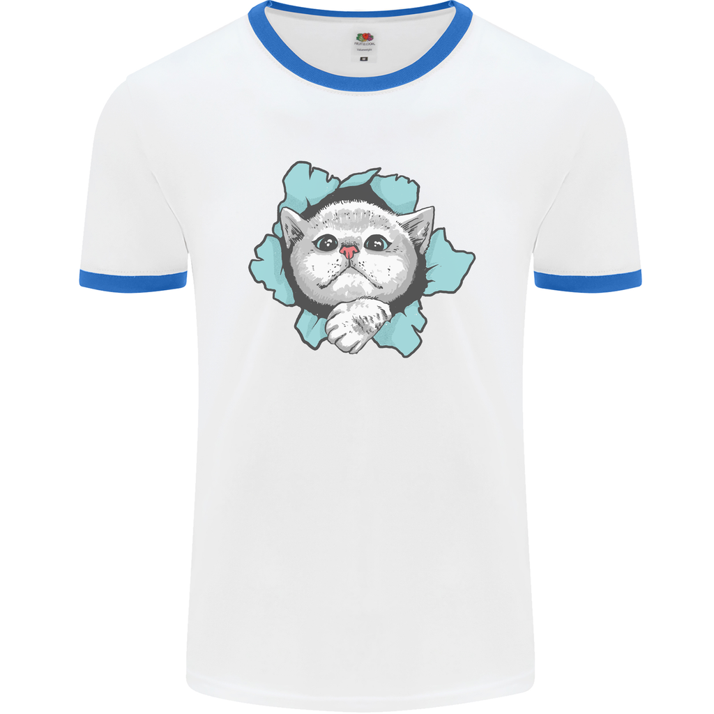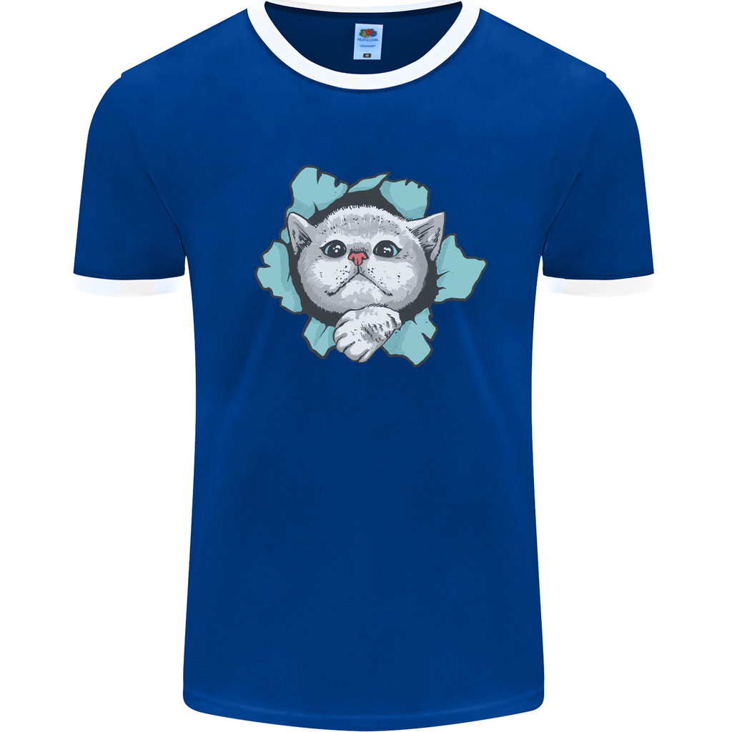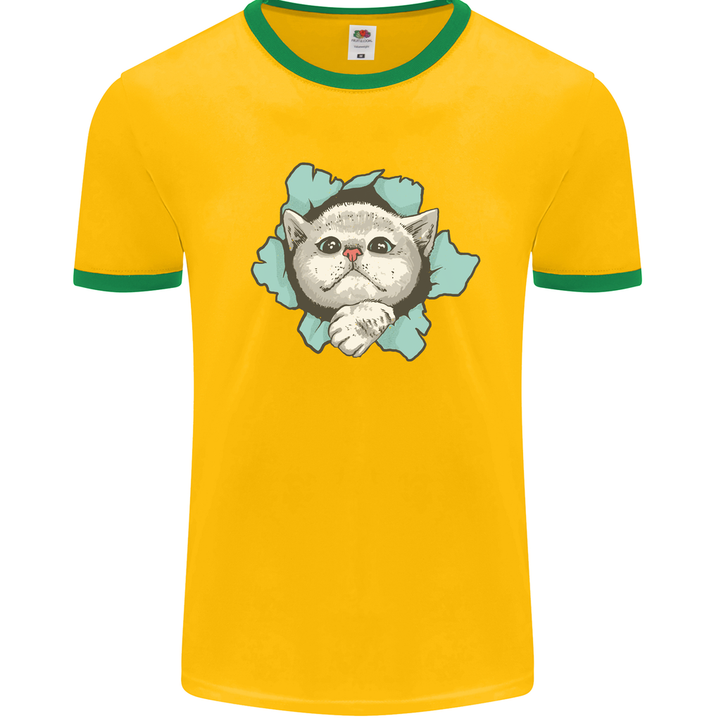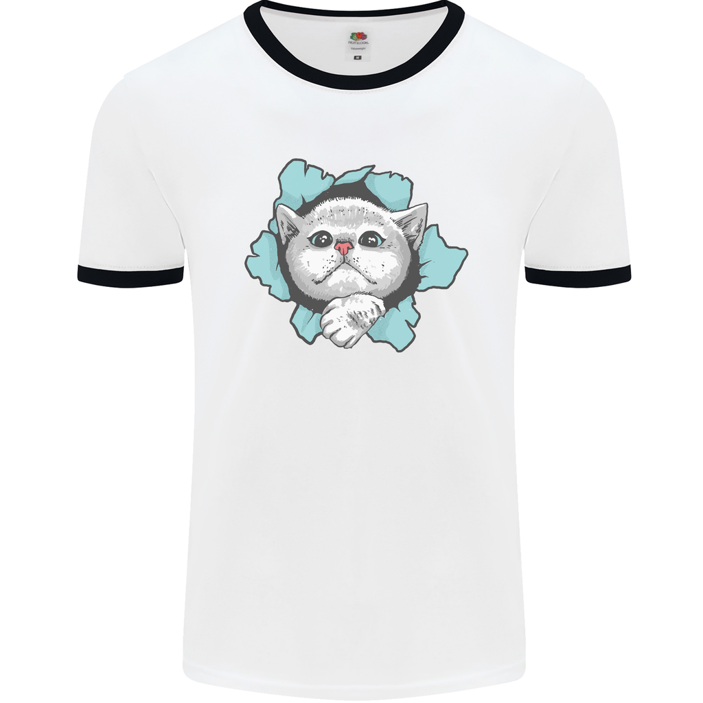 Whether you're a cat enthusiast or just someone who loves to stand out from the crowd, the Cat Hole Men's Ringer T-Shirt is the perfect addition to your wardrobe. Pair it with your favourite denim jeans for a laid-back look or layer it under a jacket for an effortlessly cool vibe.