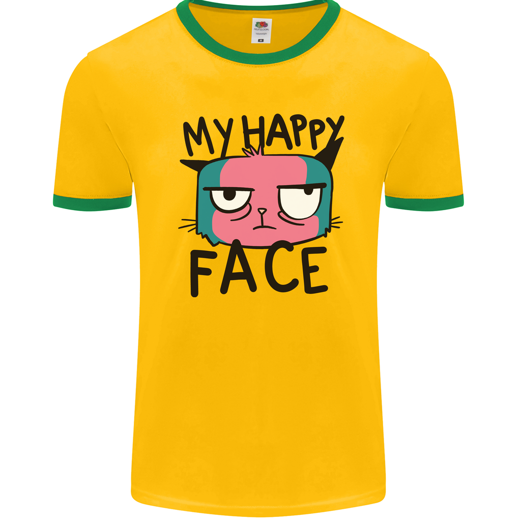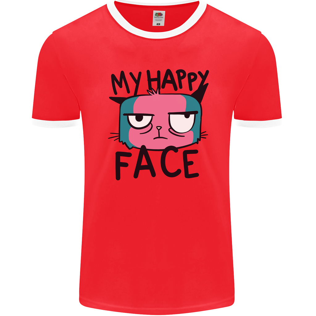 Whether you're hanging out with friends, heading to a casual event, or just lounging at home, this t-shirt is versatile and effortlessly cool. Embrace the fun-loving side of your wardrobe and make a statement with the Cat My Happy Face Funny Grumpy Men's Ringer T-Shirt.