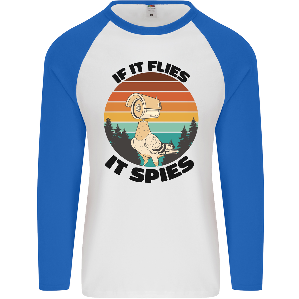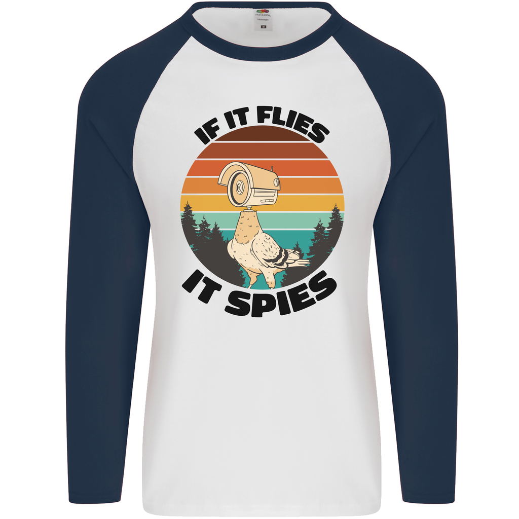 Introducing the hilarious and eye-catching "If Flies it Spies" baseball t-shirt, a must-have addition for any man with a sense of humour and a love for conspiracy theories. This long sleeve design adds a cool twist to casual wear, making it perfect for gatherings, outings, or just lounging around. The striking print captures everyone's attention, sparking conversations and laughter.