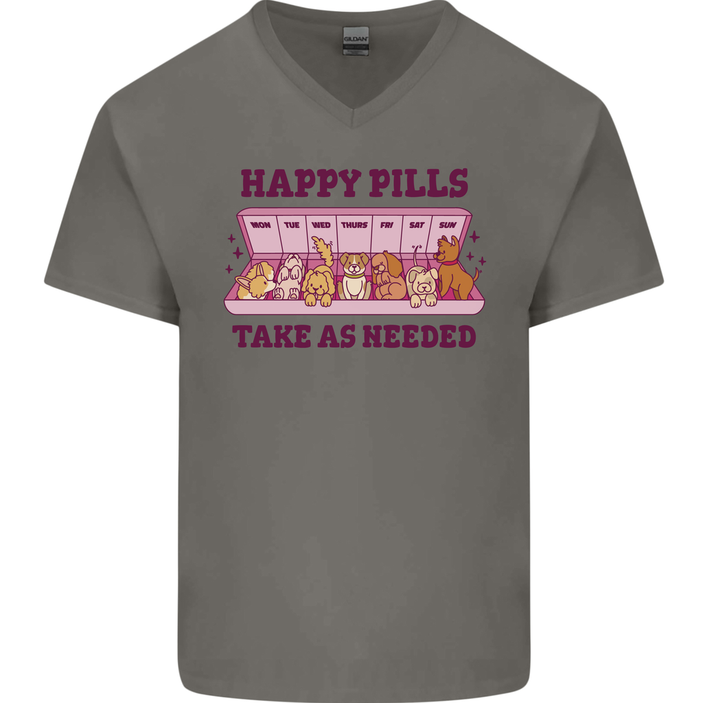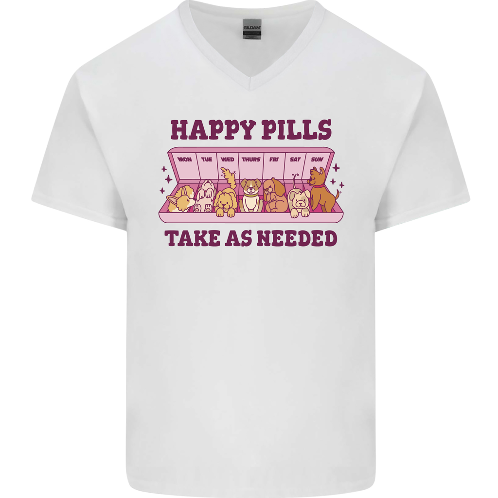 Add a playful twist to your wardrobe and let your personality shine with this Dog Happy Pills Men's V-Neck Cotton T-Shirt. Get yours today and spread the dog love wherever you go!