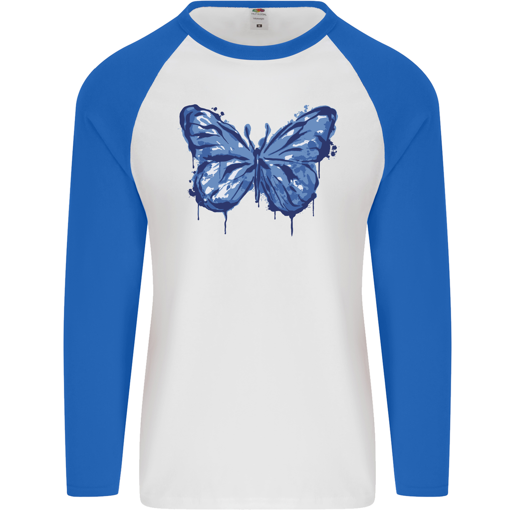 Step into a world of style and comfort with the Dripping Blue Butterfly Rhopalocera Men's Long Sleeve Baseball T-Shirt. This unique piece not only elevates your wardrobe but also makes a bold statement. The eye-catching butterfly design drapes elegantly across the fabric, showcasing rich blue hues that are sure to capture attention wherever you go.