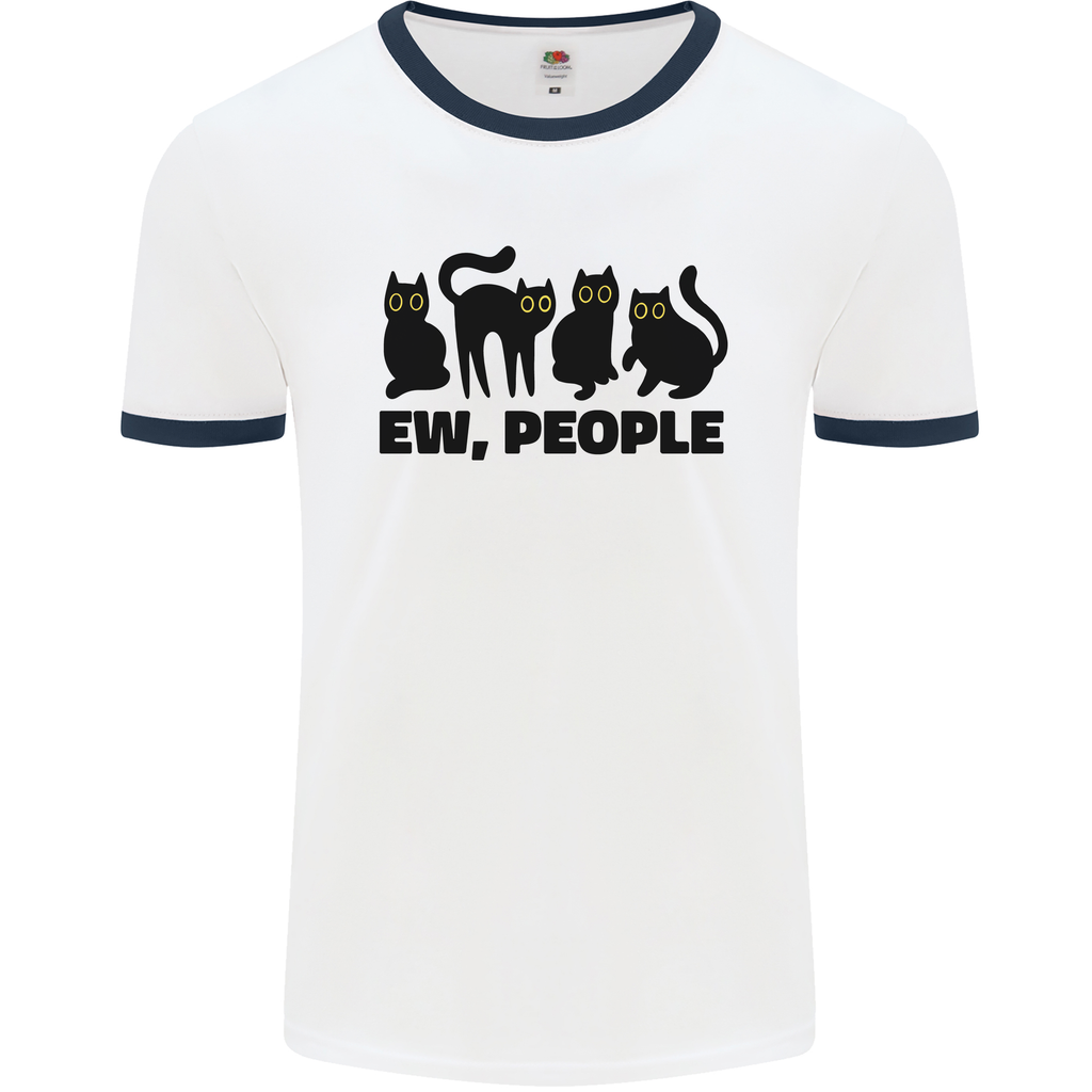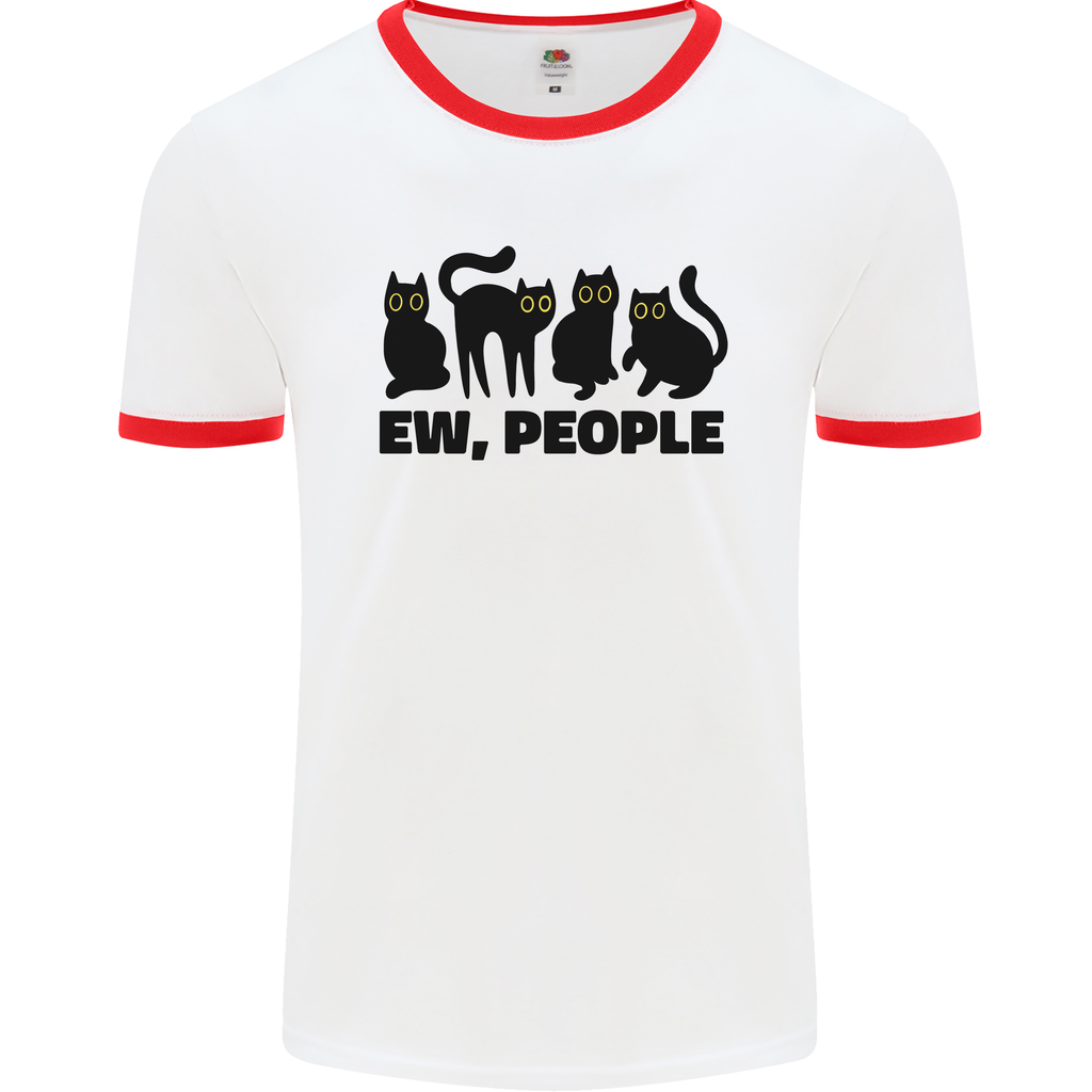 Express your love for cats and your disdain for people with this hilarious "Ew People Cats" Men's Ringer T-Shirt! Crafted for comfort and style, this shirt is a must-have for any cat lover who appreciates a touch of humour in their wardrobe.