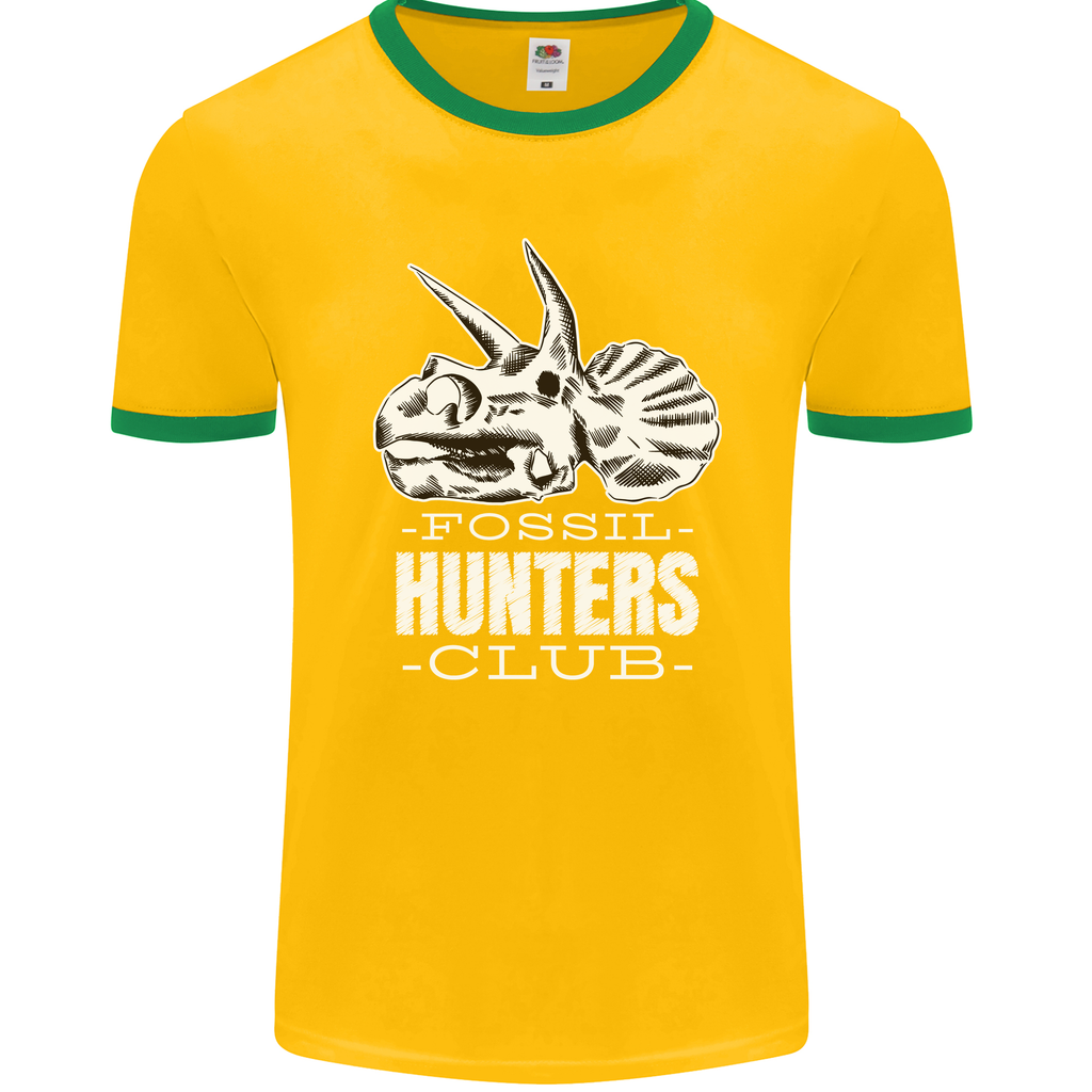 Welcome to the Fossil Hunters Club Palaeontologist Dinosaurs Mens Ringer T-Shirt by FotL. Step into the world of discovery and style with this unique piece that combines history and fashion in one! Whether you are a seasoned palaeontologist or a dinosaur enthusiast, this ringer t-shirt is the perfect addition to your wardrobe.