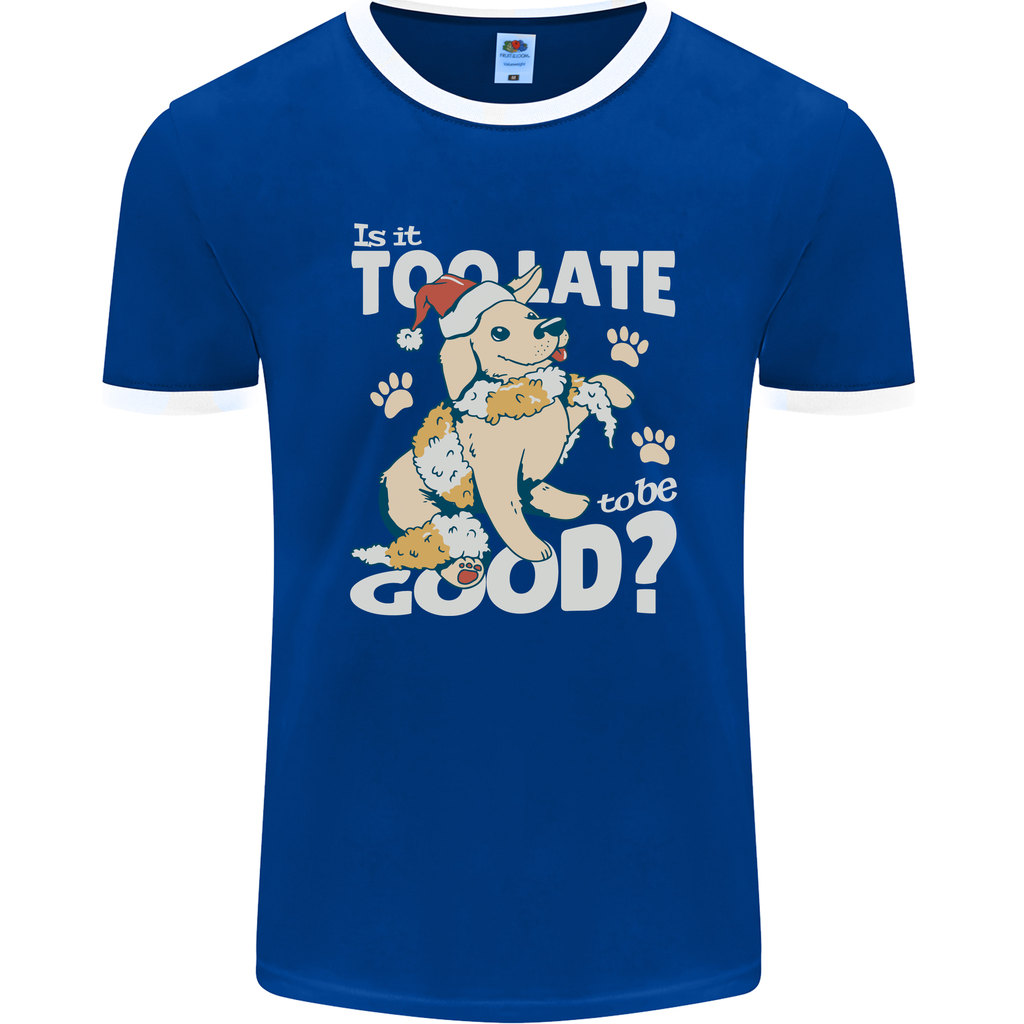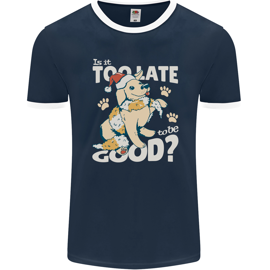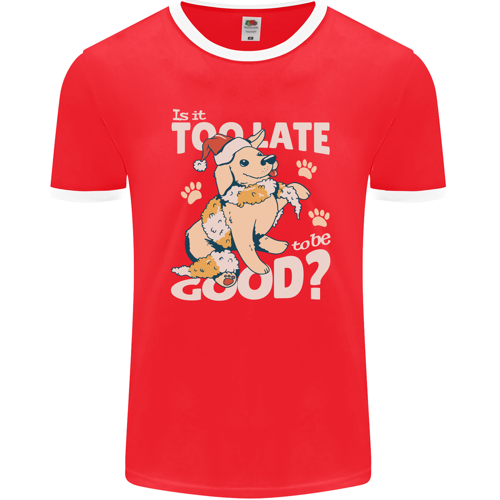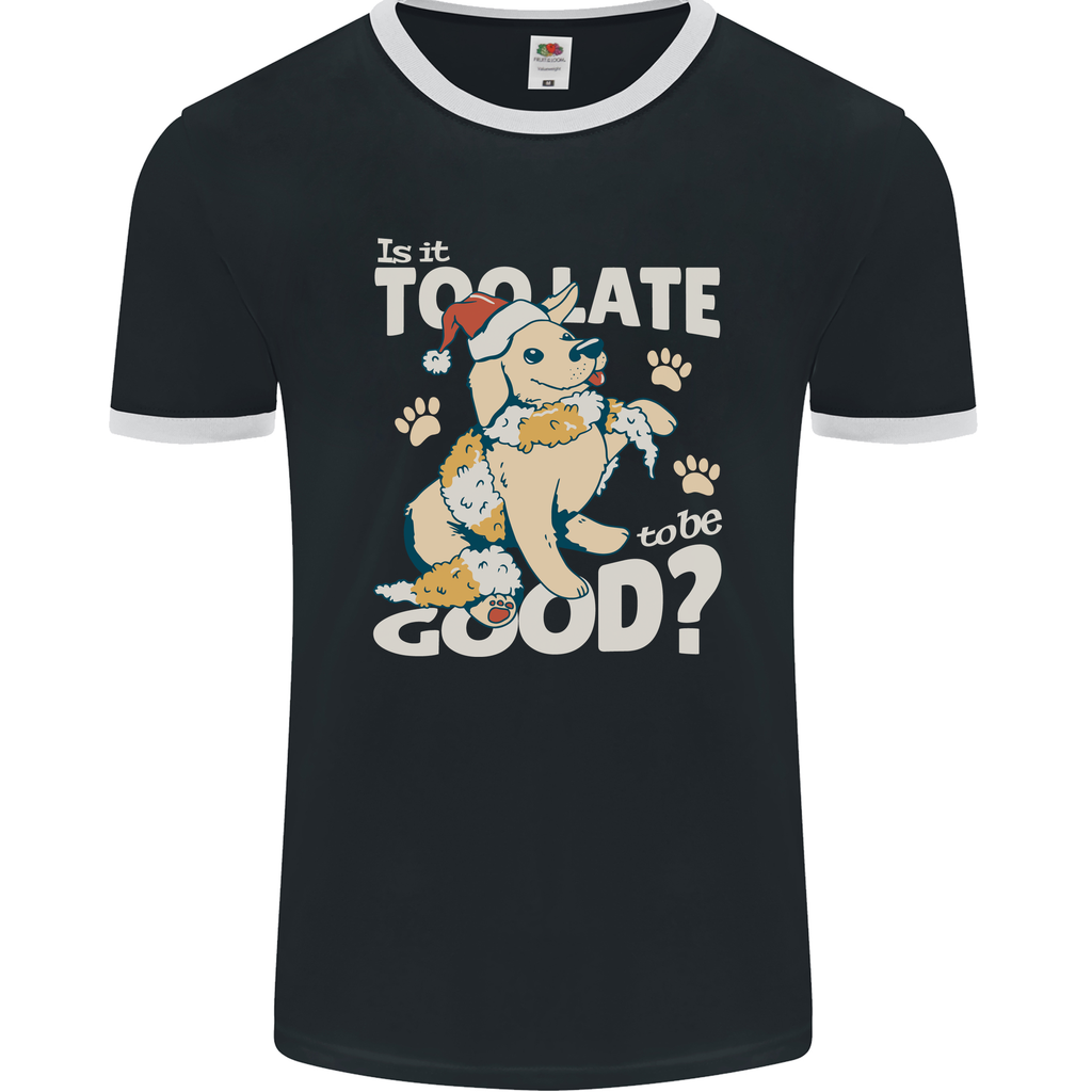 Funny Christmas Dog Too Late to Be Good Mens Ringer T-Shirt FotL