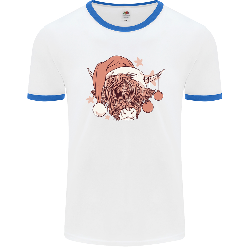 Step into the festive season with a touch of whimsy and charm wearing our Funny Christmas Highland Cow Santa Hat Men's Ringer T-Shirt. This playful t-shirt is the perfect blend of comfort and style, making it a must-have addition to your holiday wardrobe.
