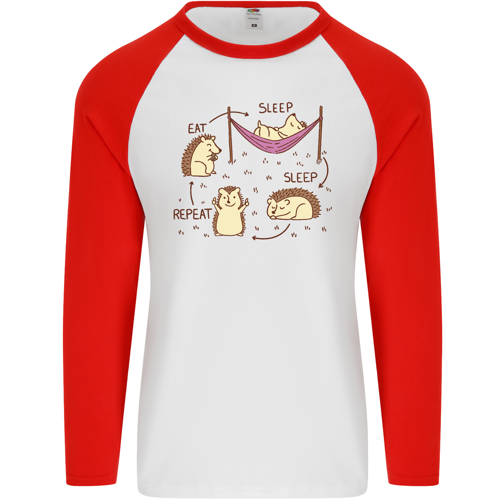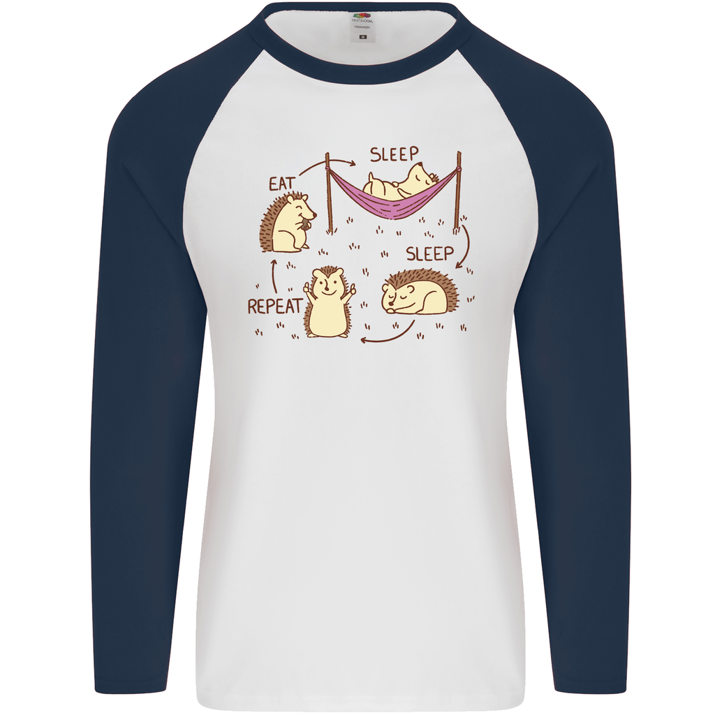 Show off your quirky side with the Funny Hedgehog Eat Sleep Repeat Lover Men's Long Sleeve Baseball T-Shirt. This unique and whimsical tee is perfect for those who appreciate the adorable charm of hedgehogs while embracing a playful lifestyle. Crafted with comfort and style in mind, it's ideal for casual outings or lounging at home.