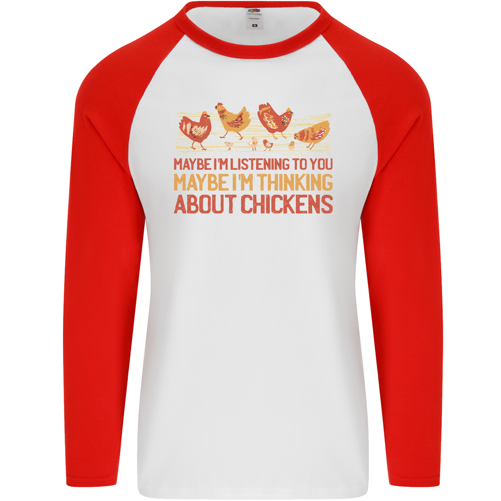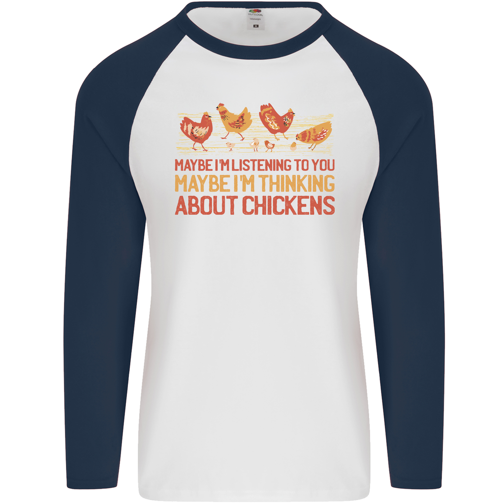 Funny Thinking About Chickens Farm Farmer Mens L/S Baseball T-Shirt