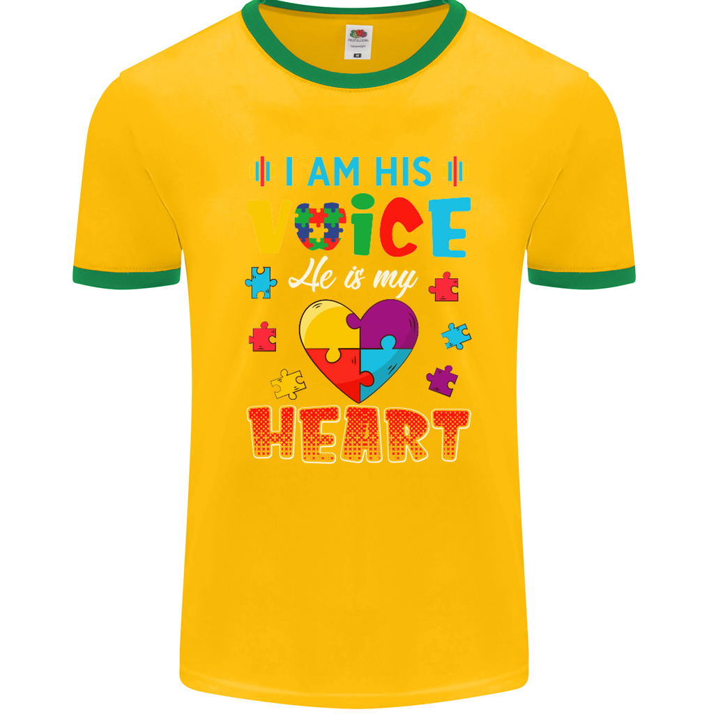 Welcome to an expressive addition to your wardrobe with the 'I Am His Voice He My Heart' Autism Autistic Men's Ringer T-Shirt by FotL. This tee is more than just fabric; it's a statement, a symbol of support, and a celebration of uniqueness.