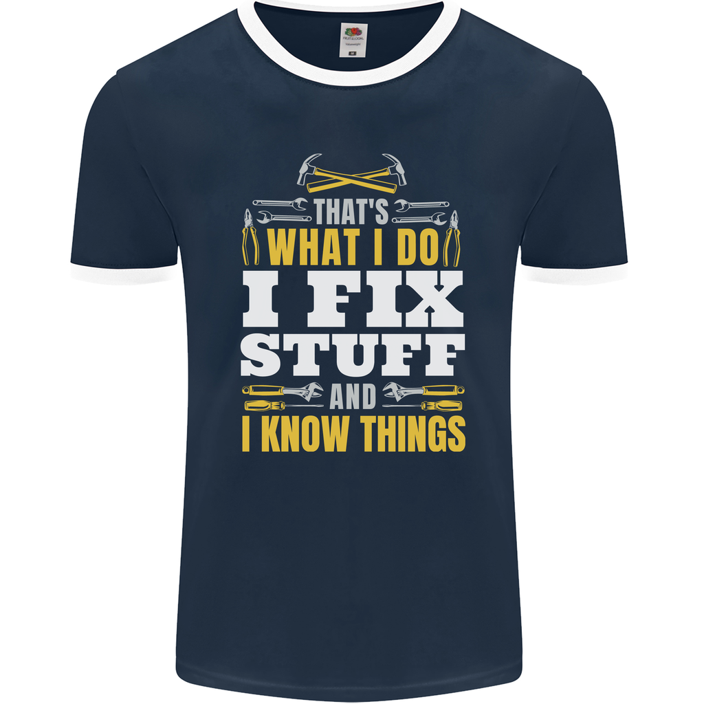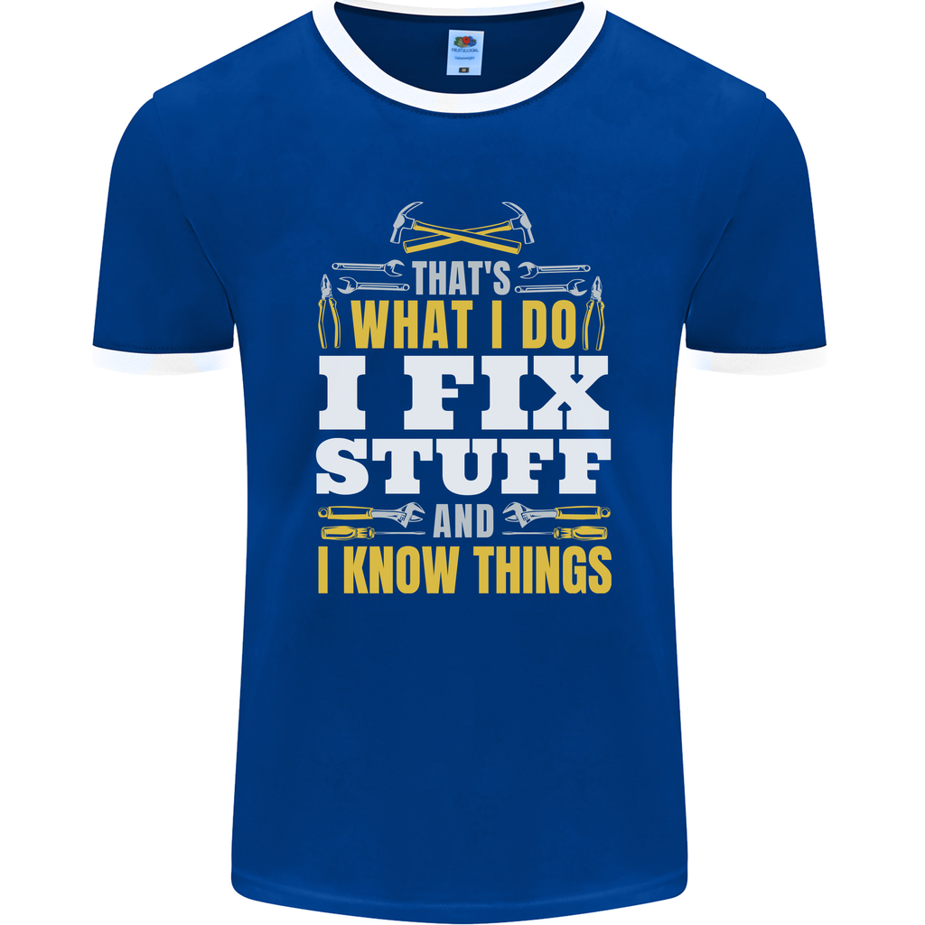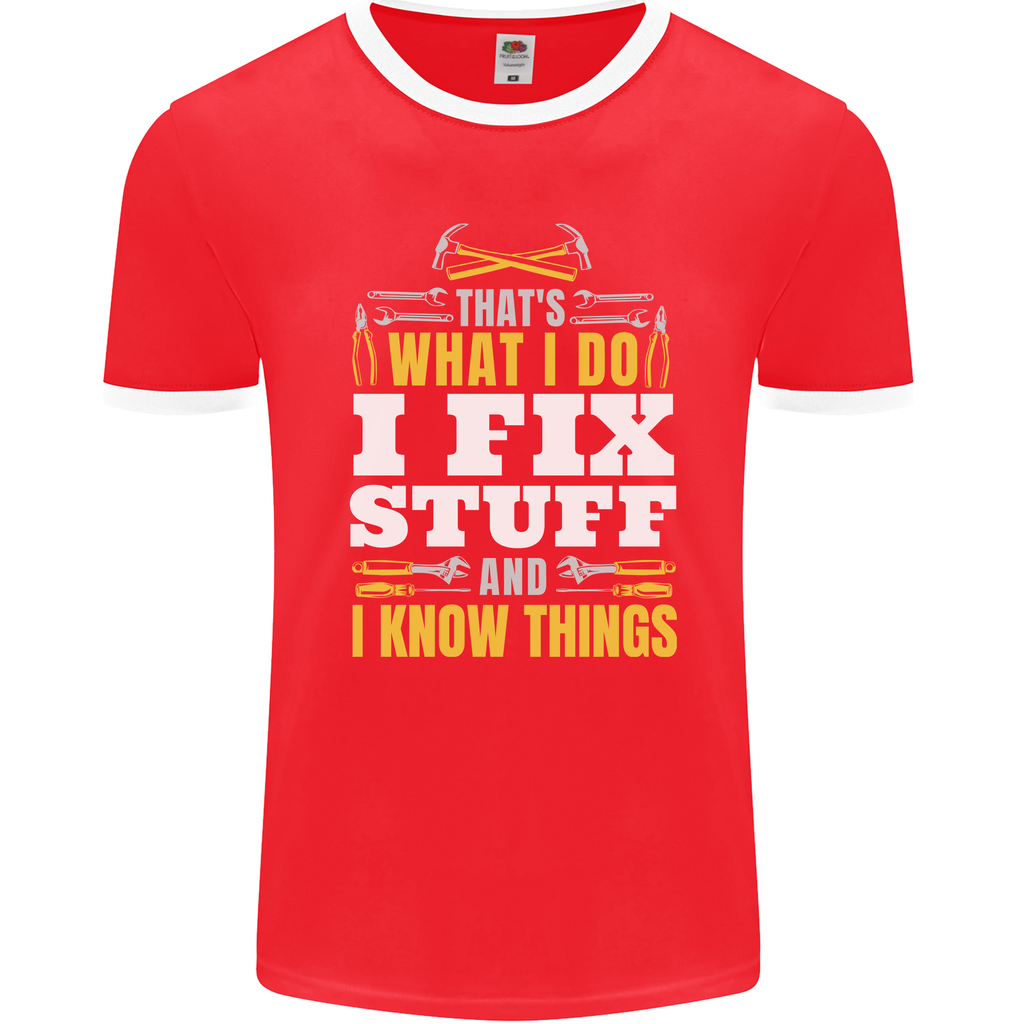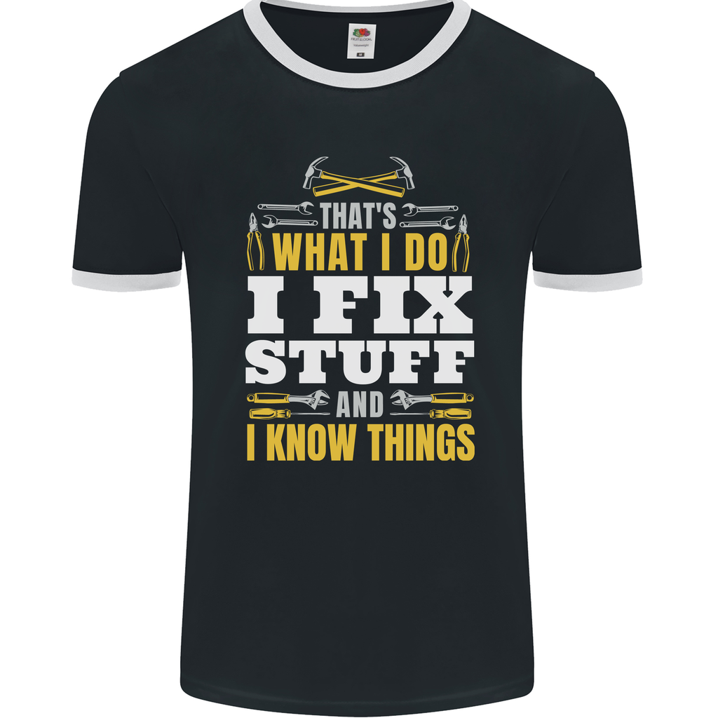 Welcome to the world of our "I Fix Stuff" Ringer T-shirt, designed for those who love to spark conversations wherever they go. Crafted for electricians, mechanics, and all handy superheroes in between, this tee is a quirky expression of your can-do attitude.