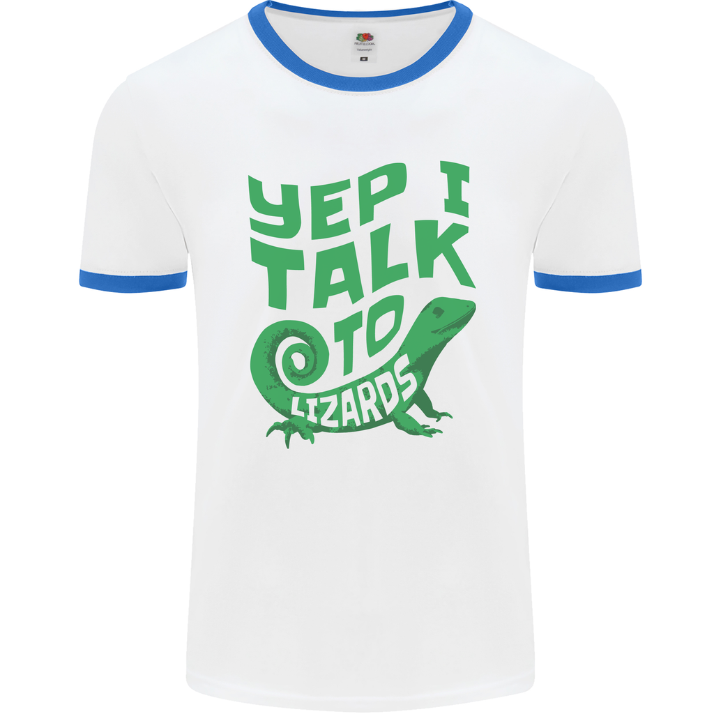 Step into the wild side with our striking "I Talk To Lizards Chameleons Bearded Dragons" men's ringer t-shirt that speaks volumes about your unique personality and love for these fascinating reptiles.