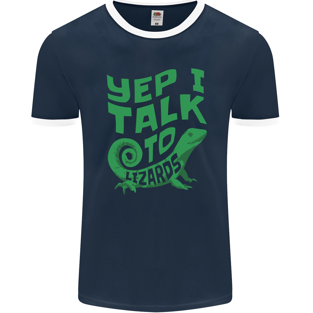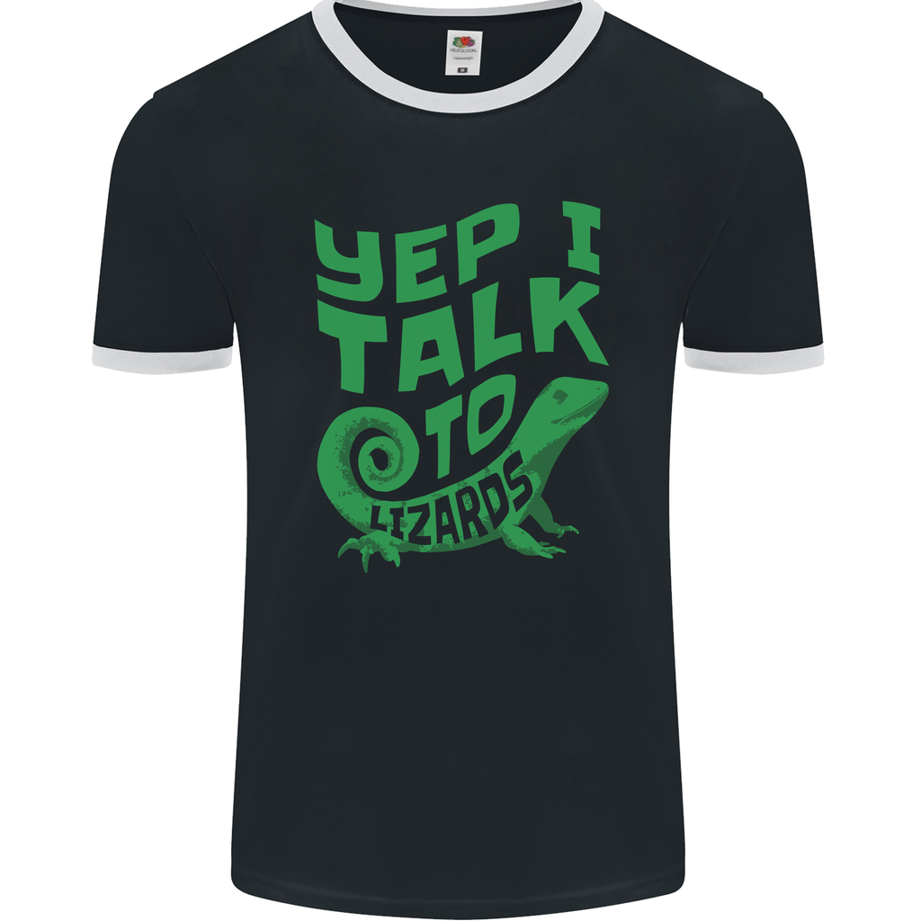 Stand out with a unique expression of style and personality in the I Talk To Lizards Chameleons Bearded Dragons Men's Ringer T-Shirt by FotL. This t-shirt is not just a piece of clothing; it's a statement!