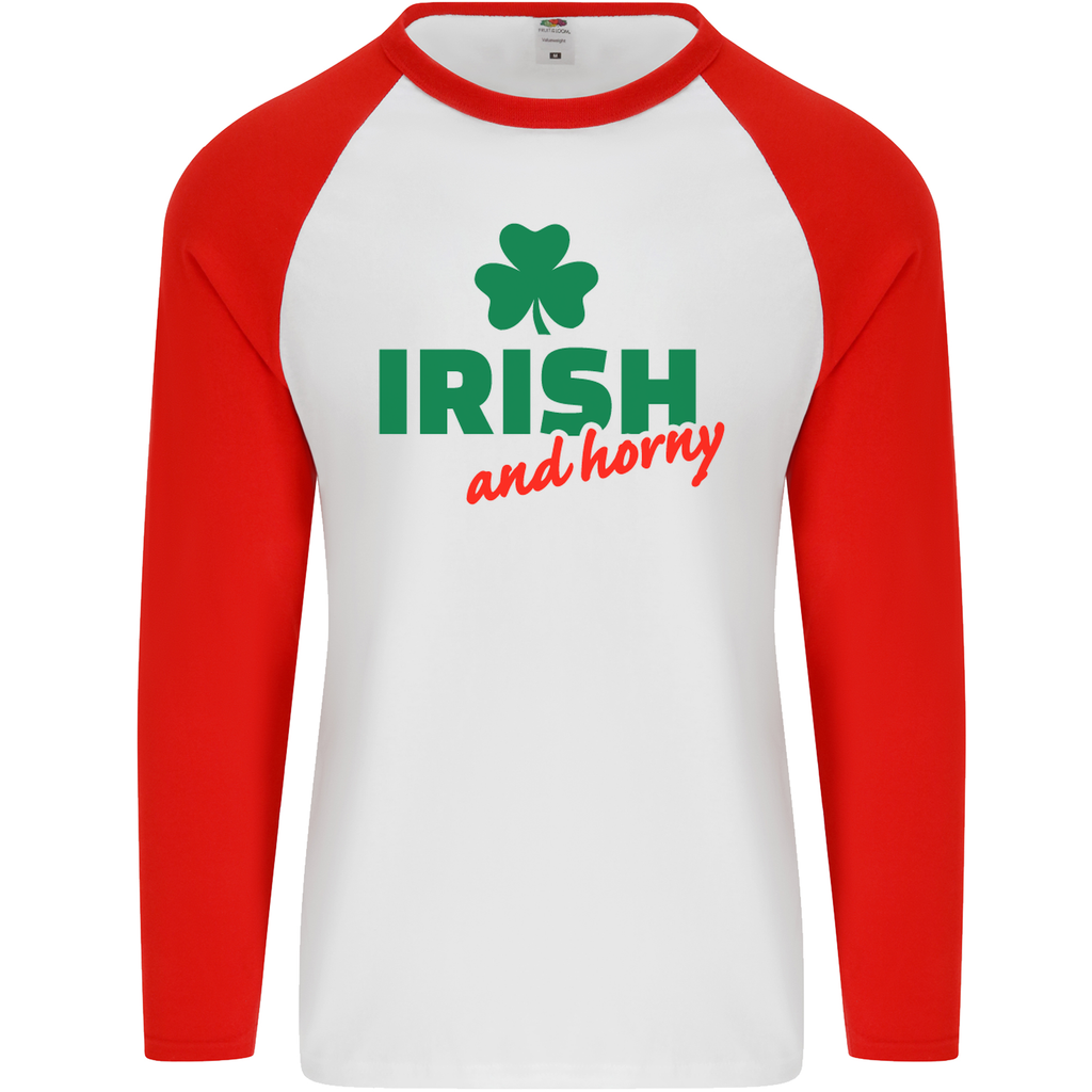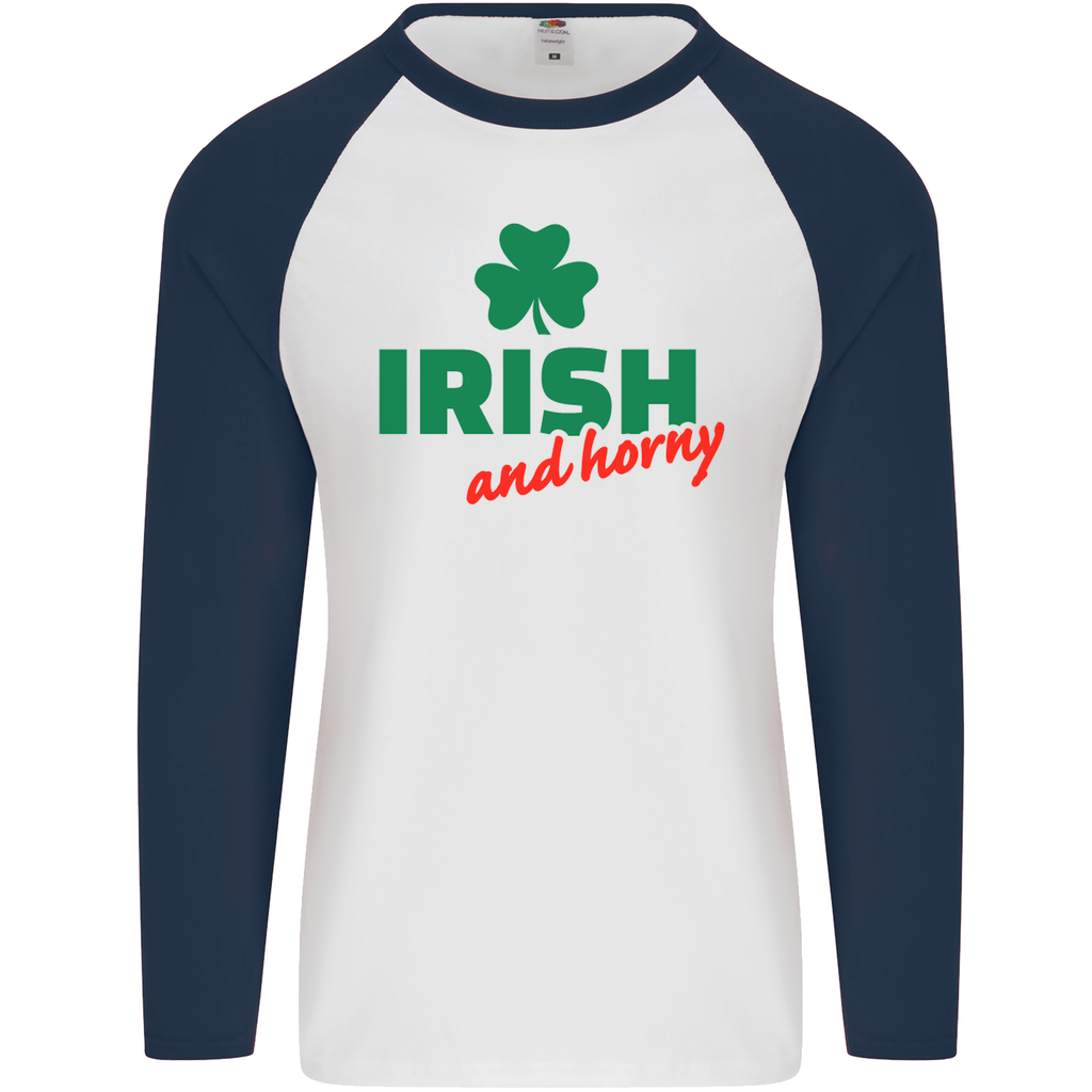 Embrace the spirit of St. Patrick's Day in style with the Irish and Horny St. Patrick's Day Men's Long Sleeve Baseball T-Shirt! This distinctive shirt perfectly blends festive fun and comfortable wear, making it an essential addition to your holiday wardrobe.