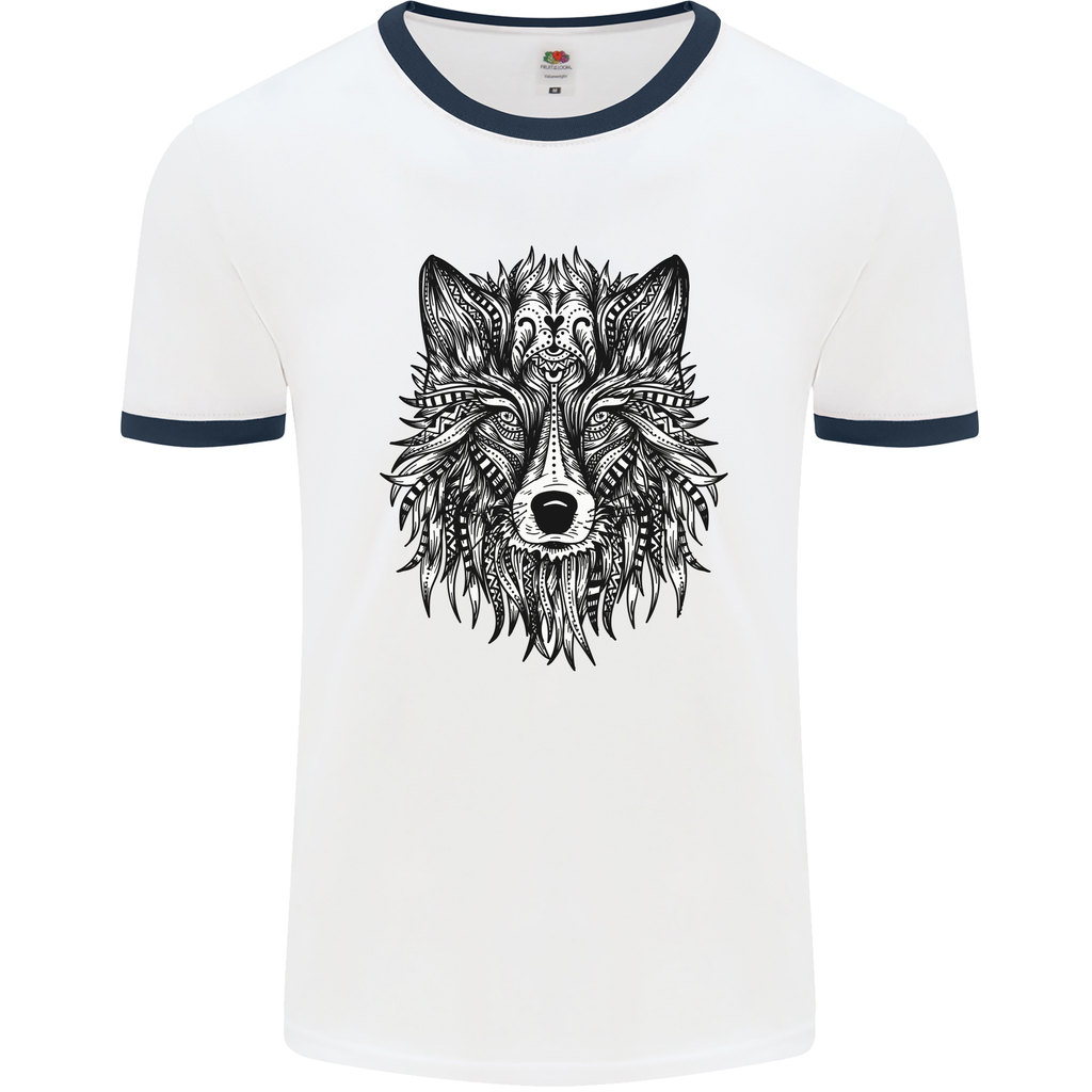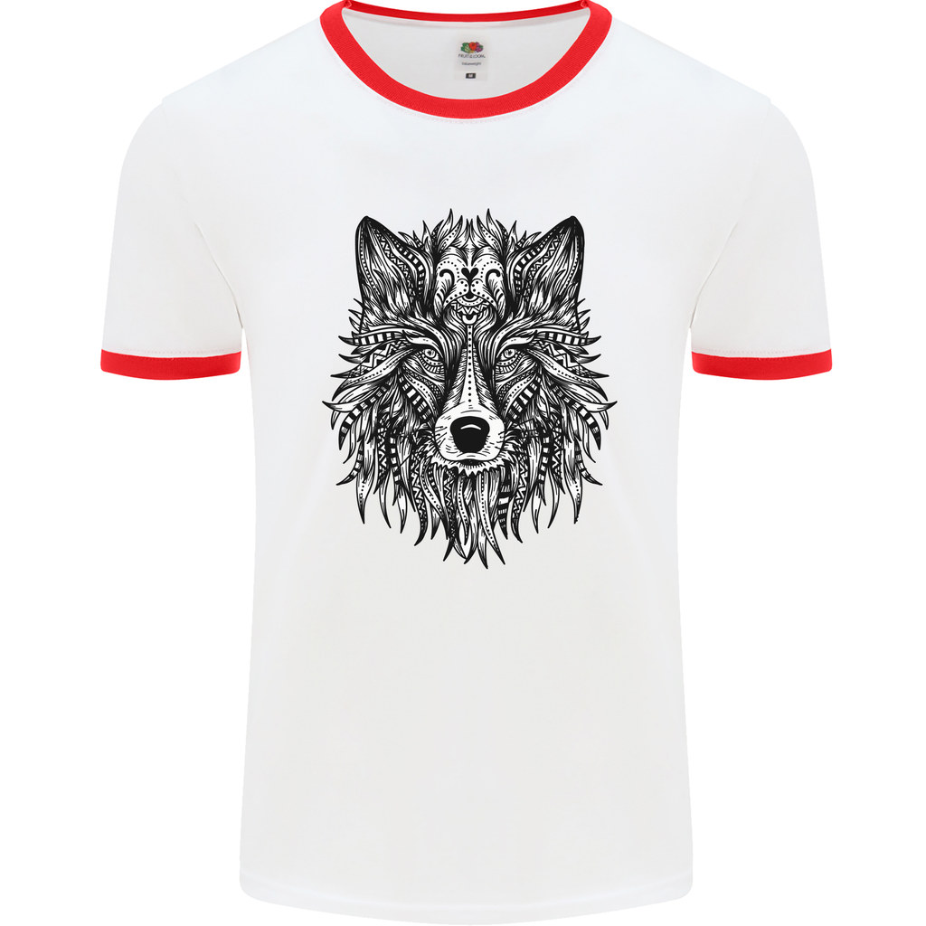 Welcome to the world of style and creativity with our Mandala Tribal Wolf Tattoo Men's Ringer T-Shirt! Make a bold statement with this unique piece that seamlessly combines traditional and modern elements.
