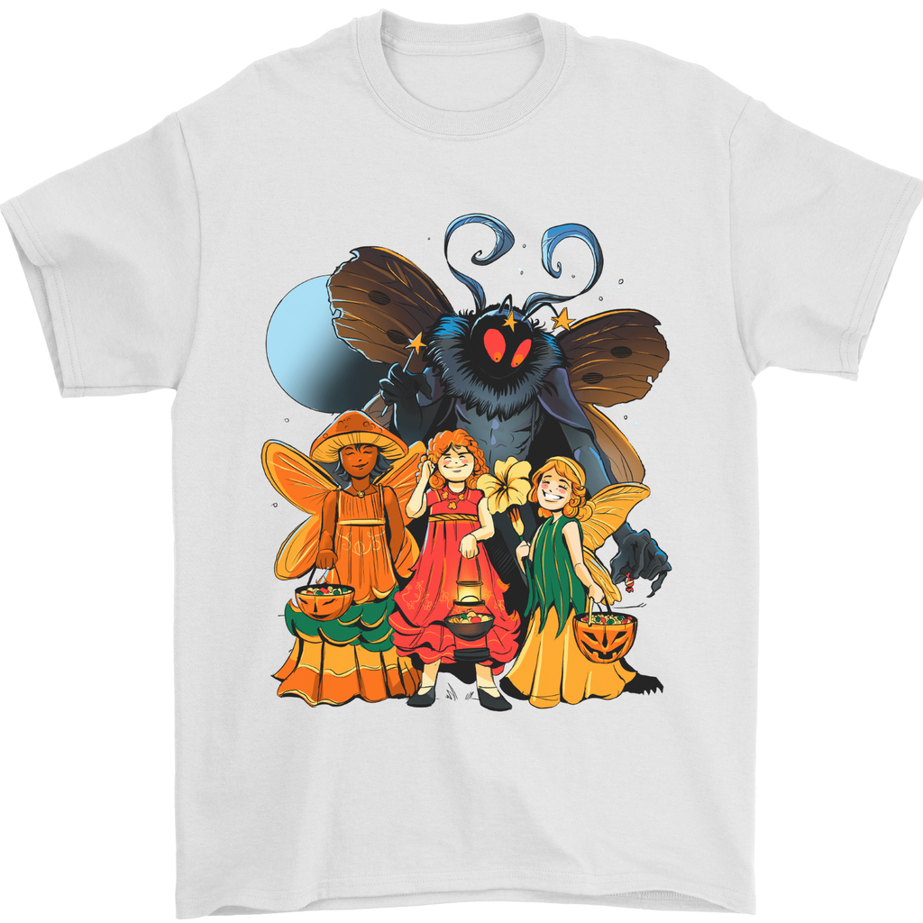 Featuring a striking design of the enigmatic Mothman surrounded by ethereal fairies, this t-shirt is a blend of supernatural intrigue and fantastical artistry. The intricate details and vibrant colours bring this mythical scene to life, making it a must-have for those who appreciate the mystical and magical.