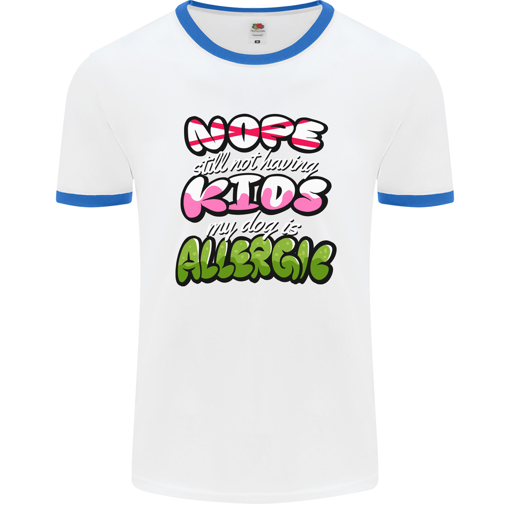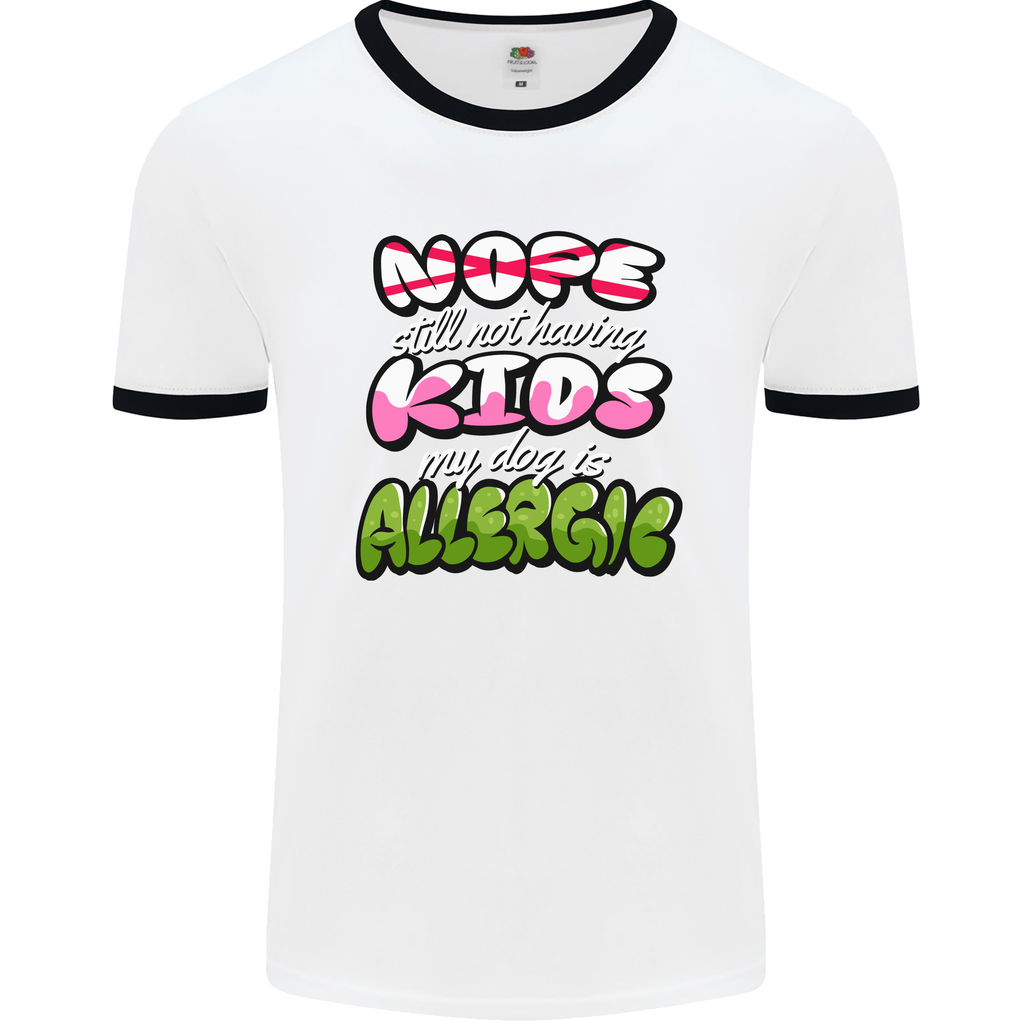 Don't miss out on the opportunity to add a touch of wit and whimsy to your everyday look. Order your "Not Having Kids the Dog is Allergic" Funny Men's Ringer T-Shirt today and let your attire reflect your playful spirit!