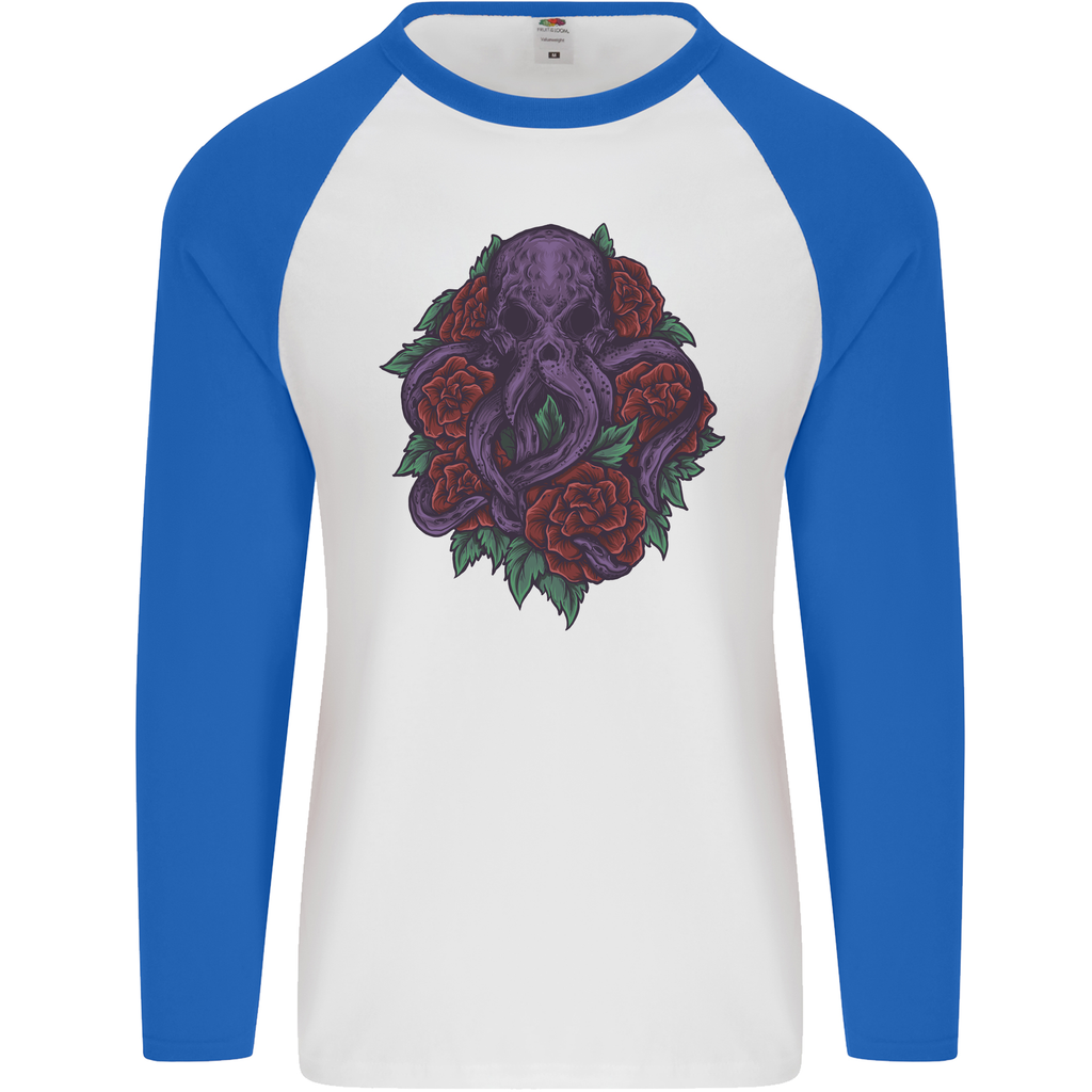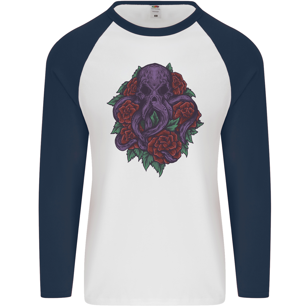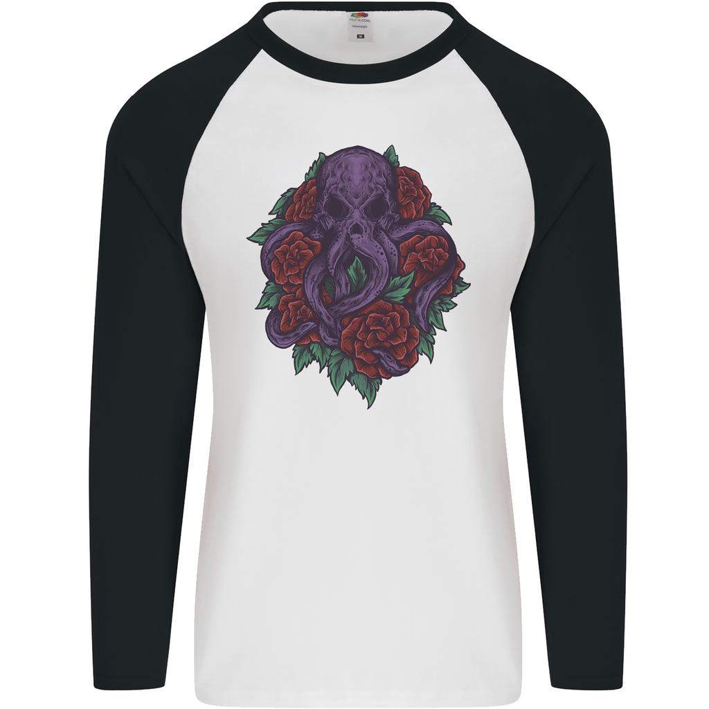 Unleash your inner sea creature with the striking Octopus Skull Cthulhu Kraken With Roses Men's Long Sleeve Baseball T-Shirt. This unique design seamlessly blends elements of mythical sea monsters with the elegance of roses, making it a must-have for any contemporary wardrobe. Perfect for those looking to make a bold statement, this t-shirt is not only stylish but also a conversation starter.