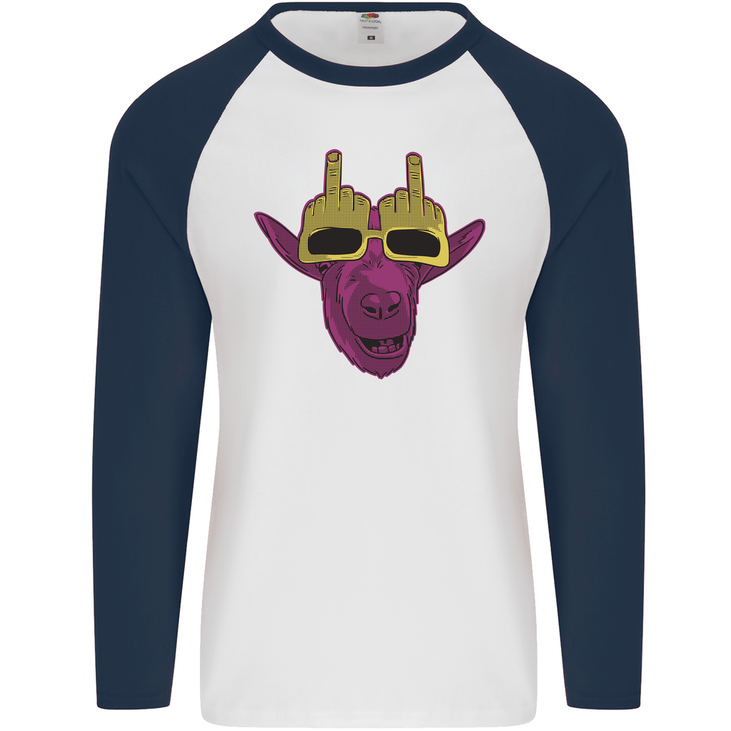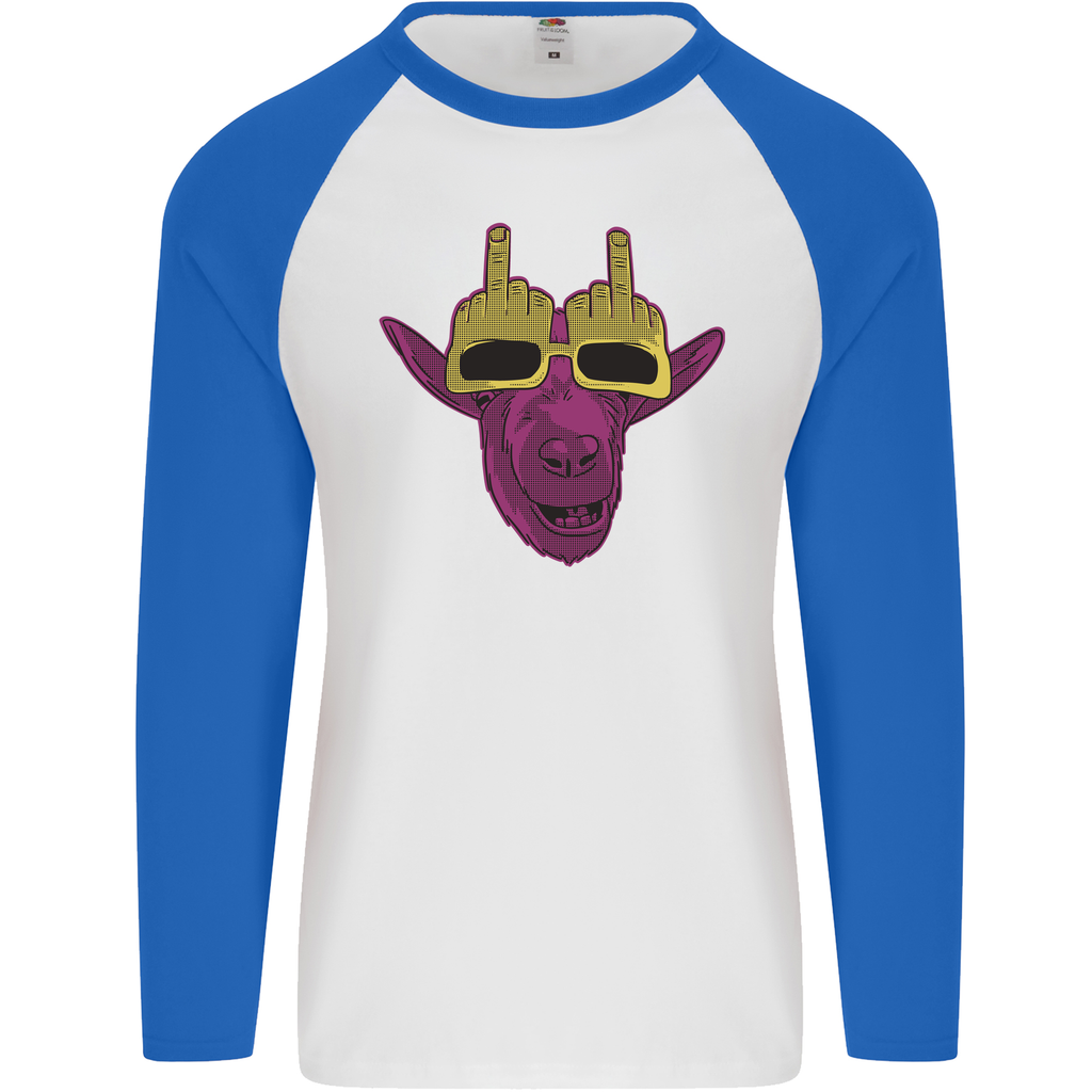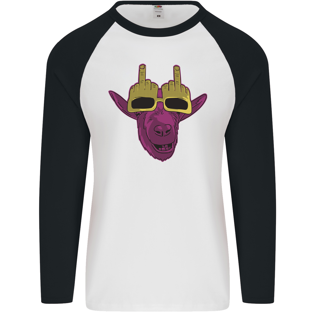 Embrace your playful side and let your clothing reflect your sense of humour with our Offensive Goat With Finger Flip Glasses Men's Long Sleeve Baseball T-Shirt. Perfect as a gift for friends who appreciate a good laugh or as a treat for yourself, this shirt is a must-have addition to any wardrobe. Get ready to turn heads and bring smiles wherever you go!