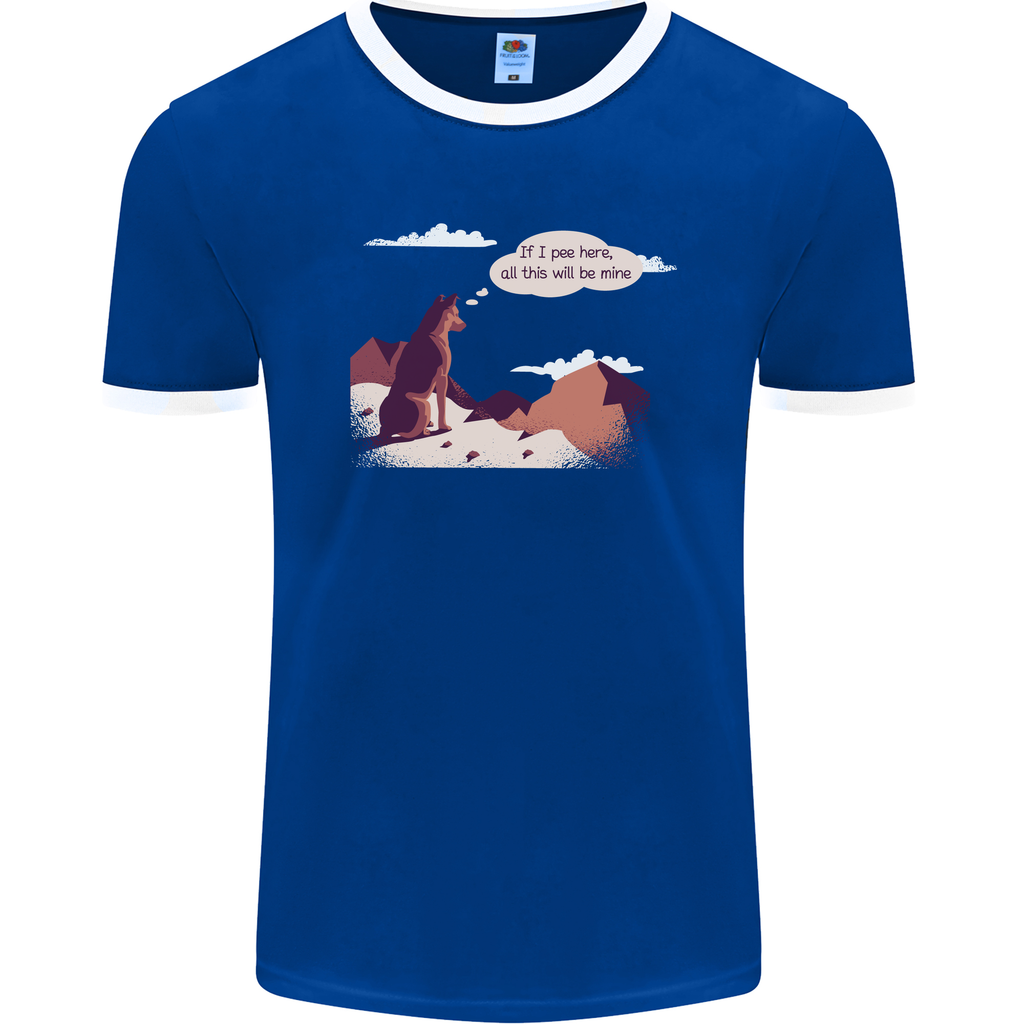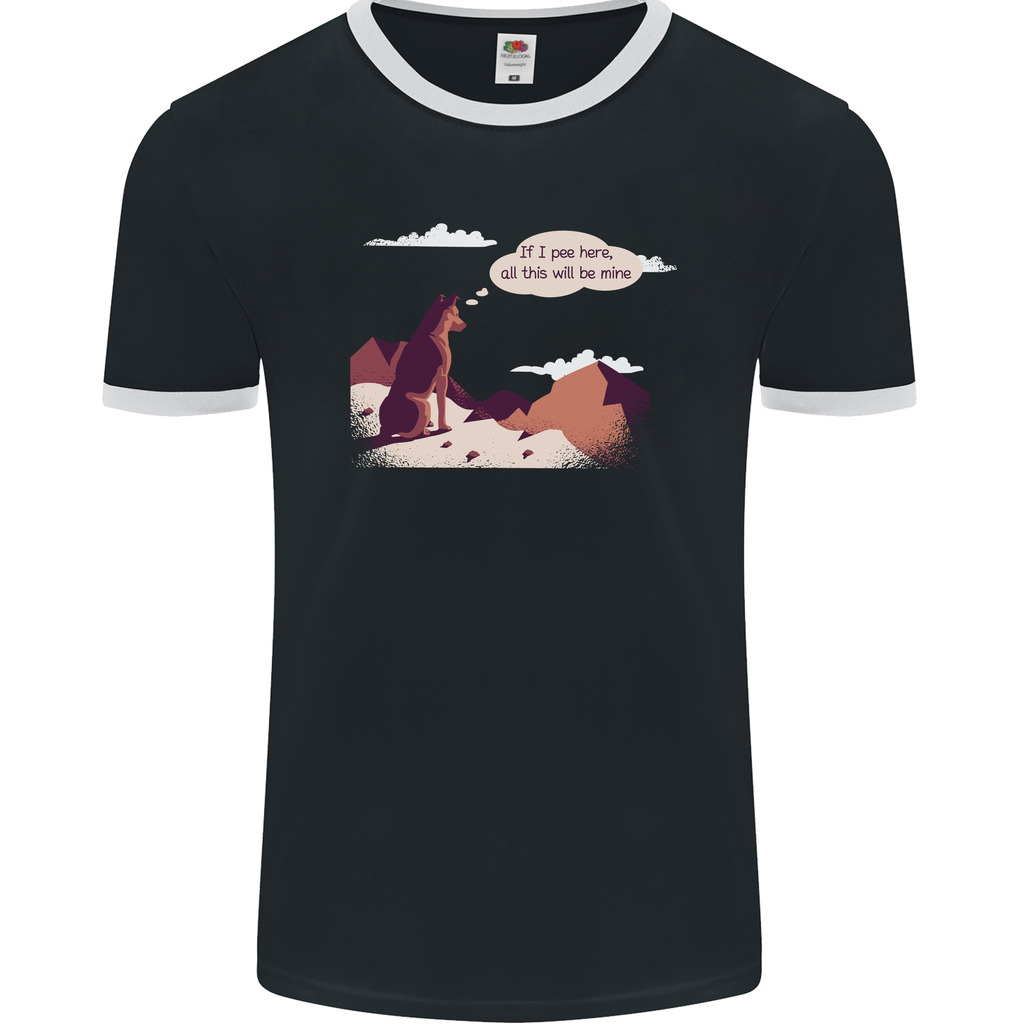 Welcome to the fun side of fashion with our “Peeing Dog in the Mountains” Funny Men's Ringer T-Shirt by FotL! Express your sense of humor and showcase your adventurous spirit with this playful tee that is both stylish and comfortable.