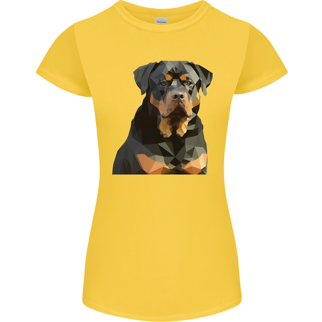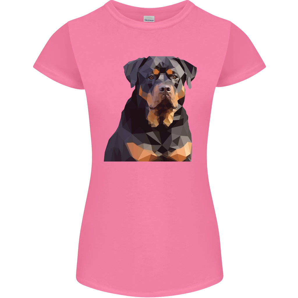 The petite cut is specially designed to flatter your figure, ensuring a comfortable fit without compromising on style. With its unique polygonal Rottweiler design, this t-shirt instantly catches the eye. It's a fantastic way to express your passion for dogs and make a fashion statement at the same time.