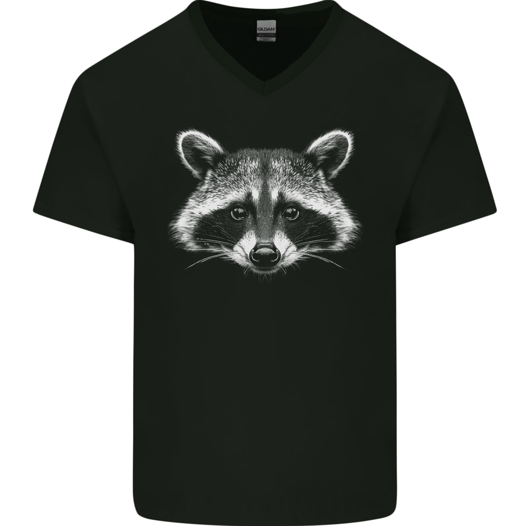 Step into the world of wildlife fashion with our Raccoon Face Mens V-Neck Cotton T-Shirt. Order yours today and show off your playful side while staying comfortable and stylish!