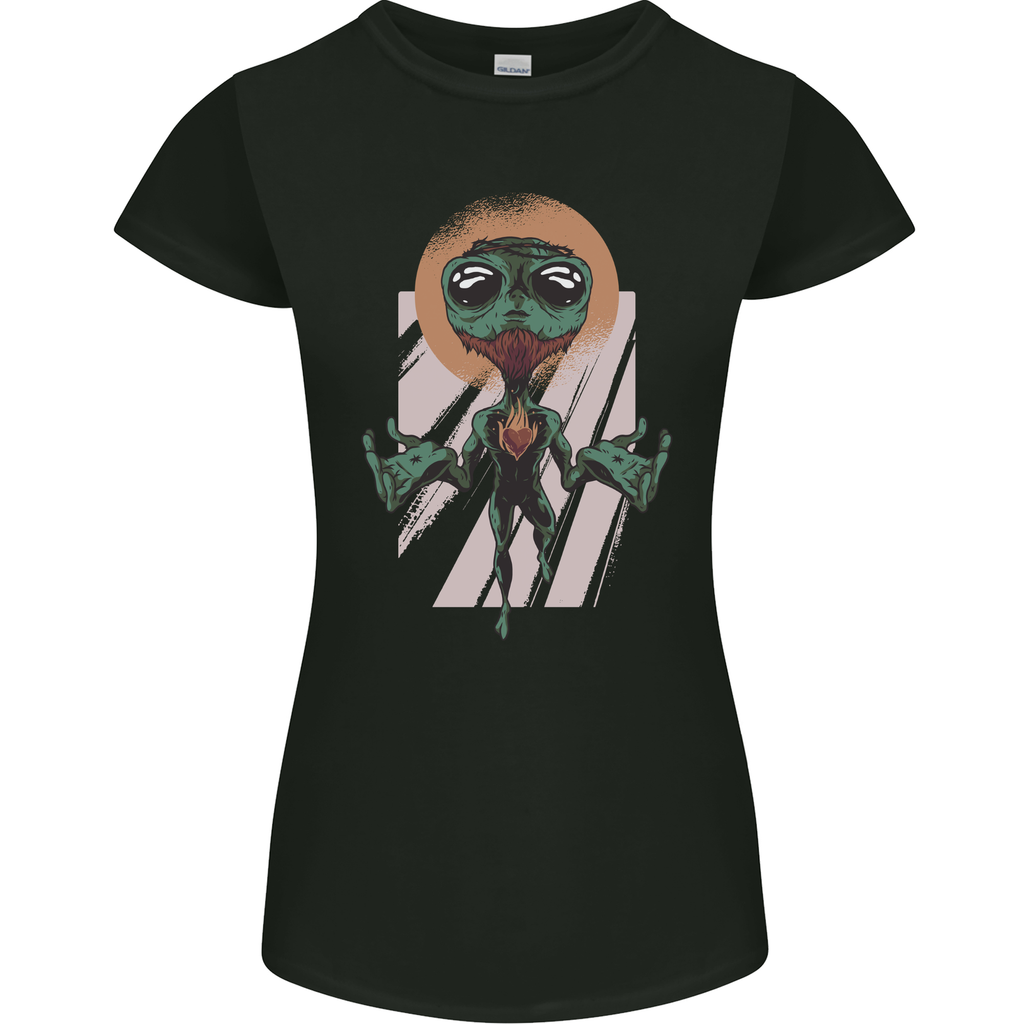 Express your unique style and beliefs with the Religious Alien Women's Petite Cut T-Shirt. This compelling design merges spirituality with a touch of extraterrestrial flair, making it the perfect choice for those who dare to stand out. Whether you are attending a casual gathering, running errands, or simply lounging at home, this T-shirt elevates your wardrobe with its creative graphics and comfortable fit.