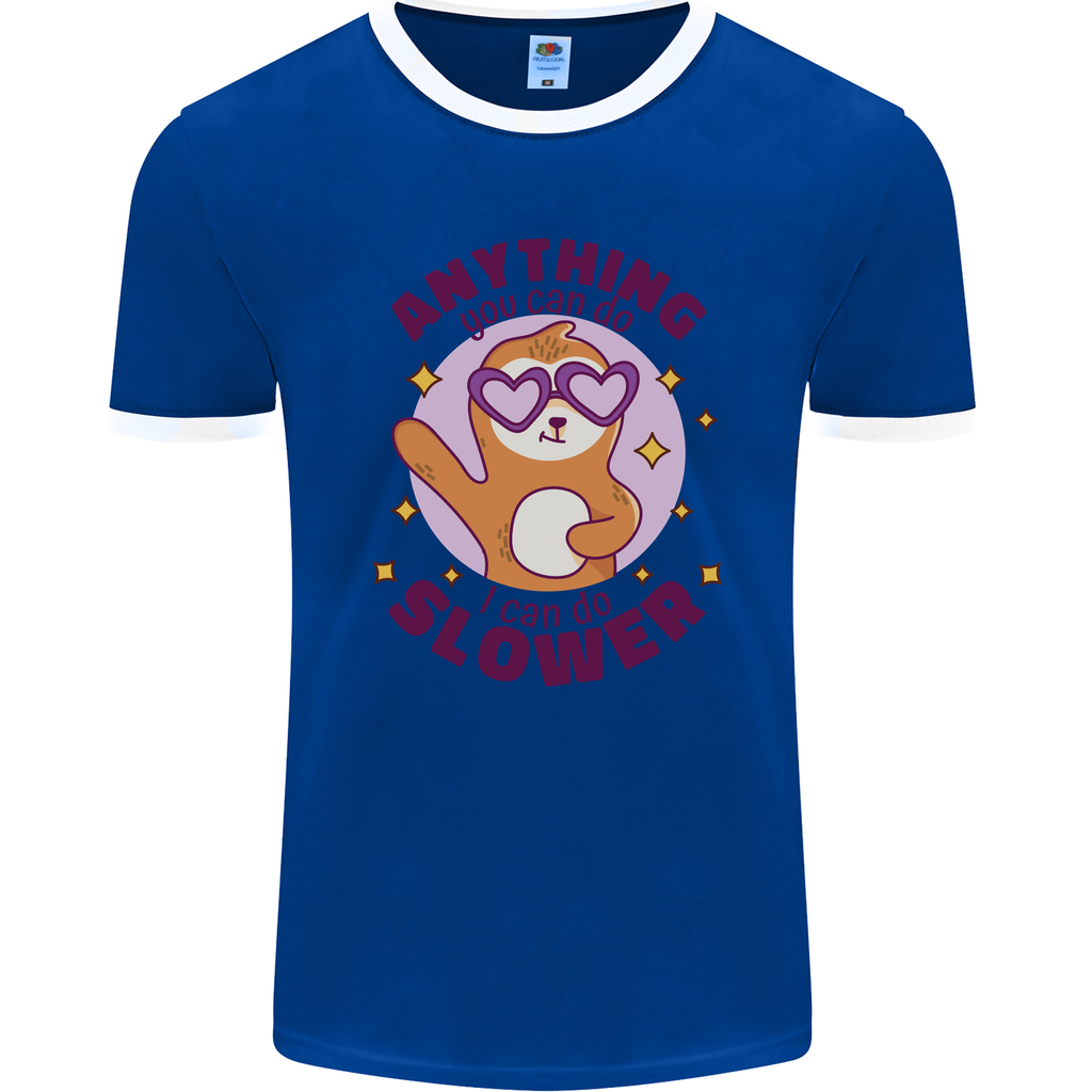 Embrace your inner sloth with this hilarious "Anything I Can Do Slower" men's ringer t-shirt from FotL. Whether you're a fan of these laid-back creatures or just appreciate a good joke, this shirt is sure to make a statement.