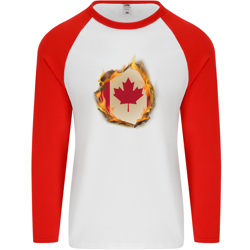 The Canadian Maple Leaf Flag Fire Canada Mens L/S Baseball T-Shirt